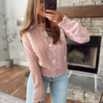 Petal Floral Embroidered Cable Knit Sweater