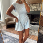 Powder Blue Pleated Drape Detail Romper