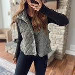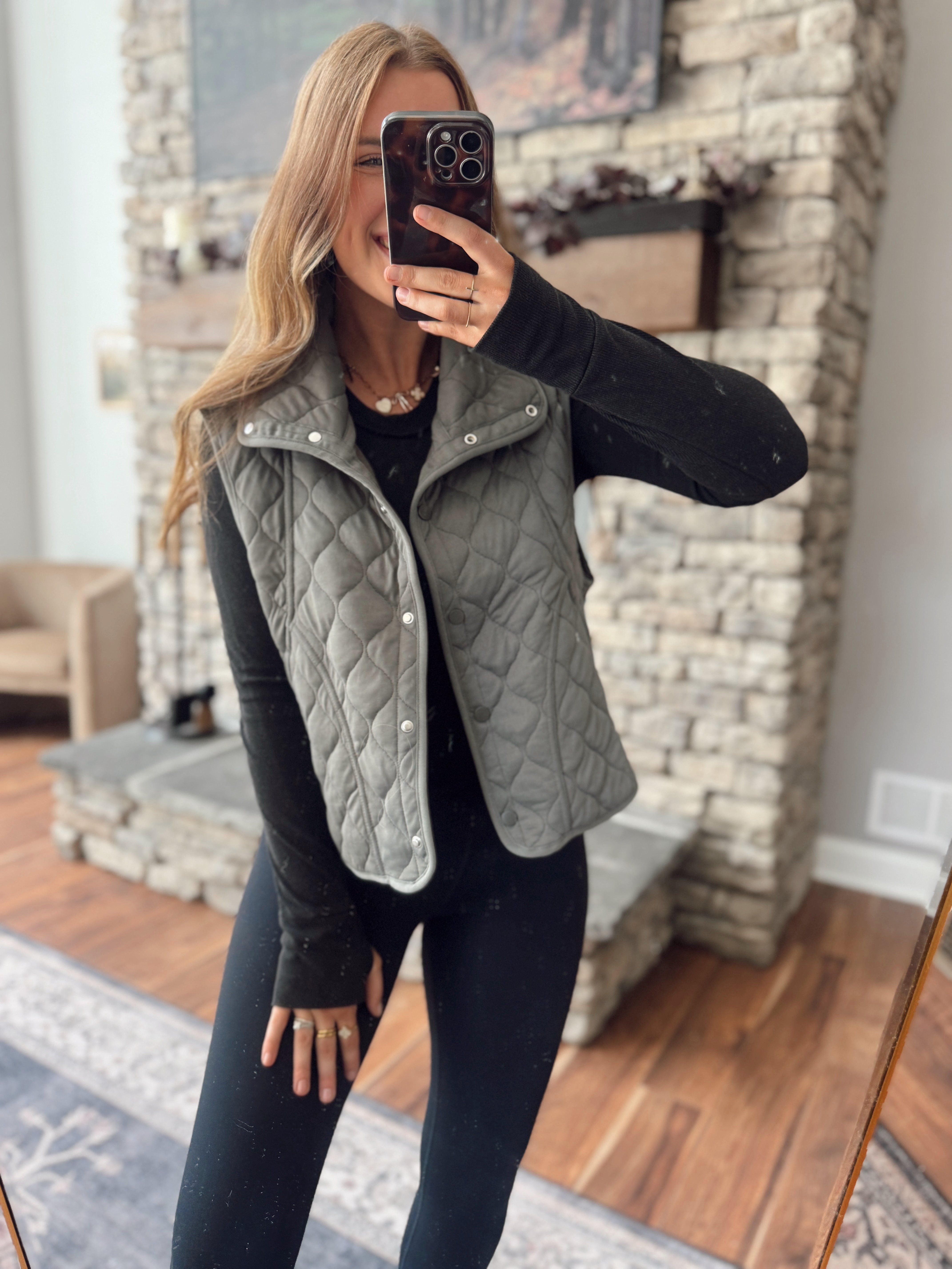 A timeless layering piece with just the right amount of structure. This quilted vest features a soft diamond-stitched design, snap-button closure, and stand collar for that polished yet casual feel. Lightweight but warm enough to throw on over long sleeves, flannels, or sweaters — it’s the ultimate grab-and-go layer.