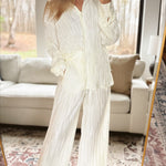 Reborn Soul Cream Accordion Pleat Button-up and Pants Set