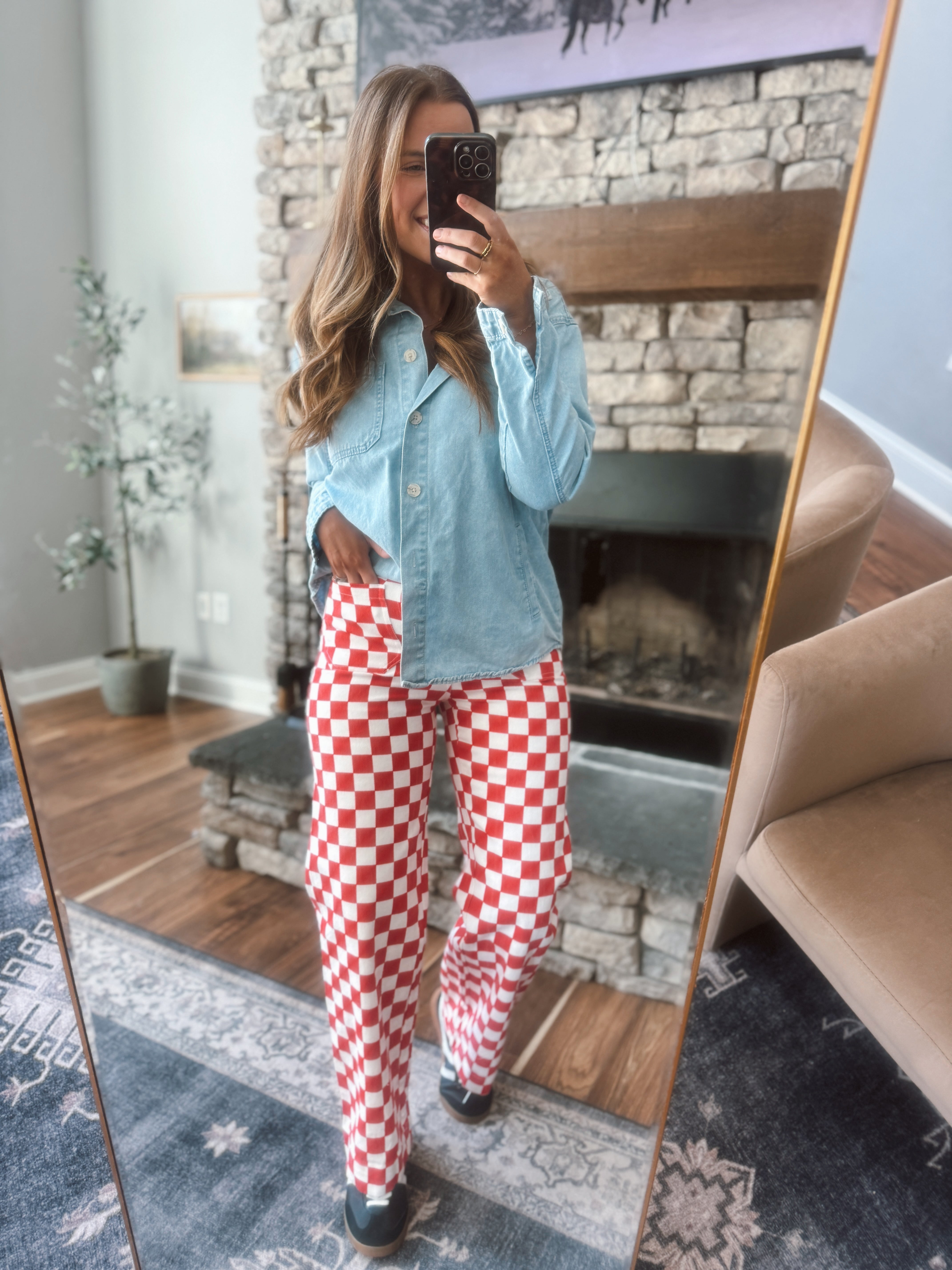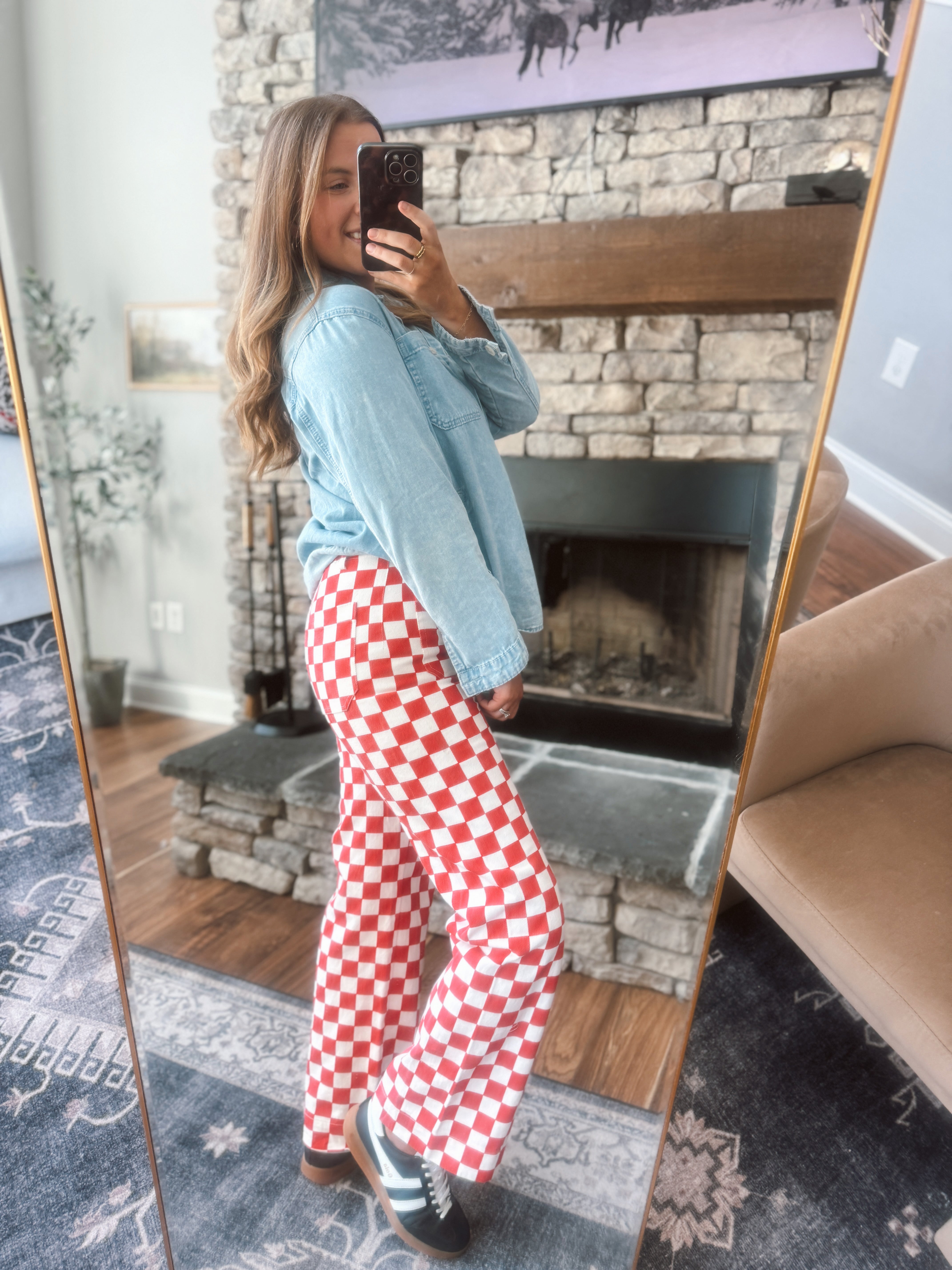 These are the pants that make the outfit. Bold, fun, and shockingly wearable, these checkered pants bring just enough attitude while still fitting true to size and comfortably through the waist.