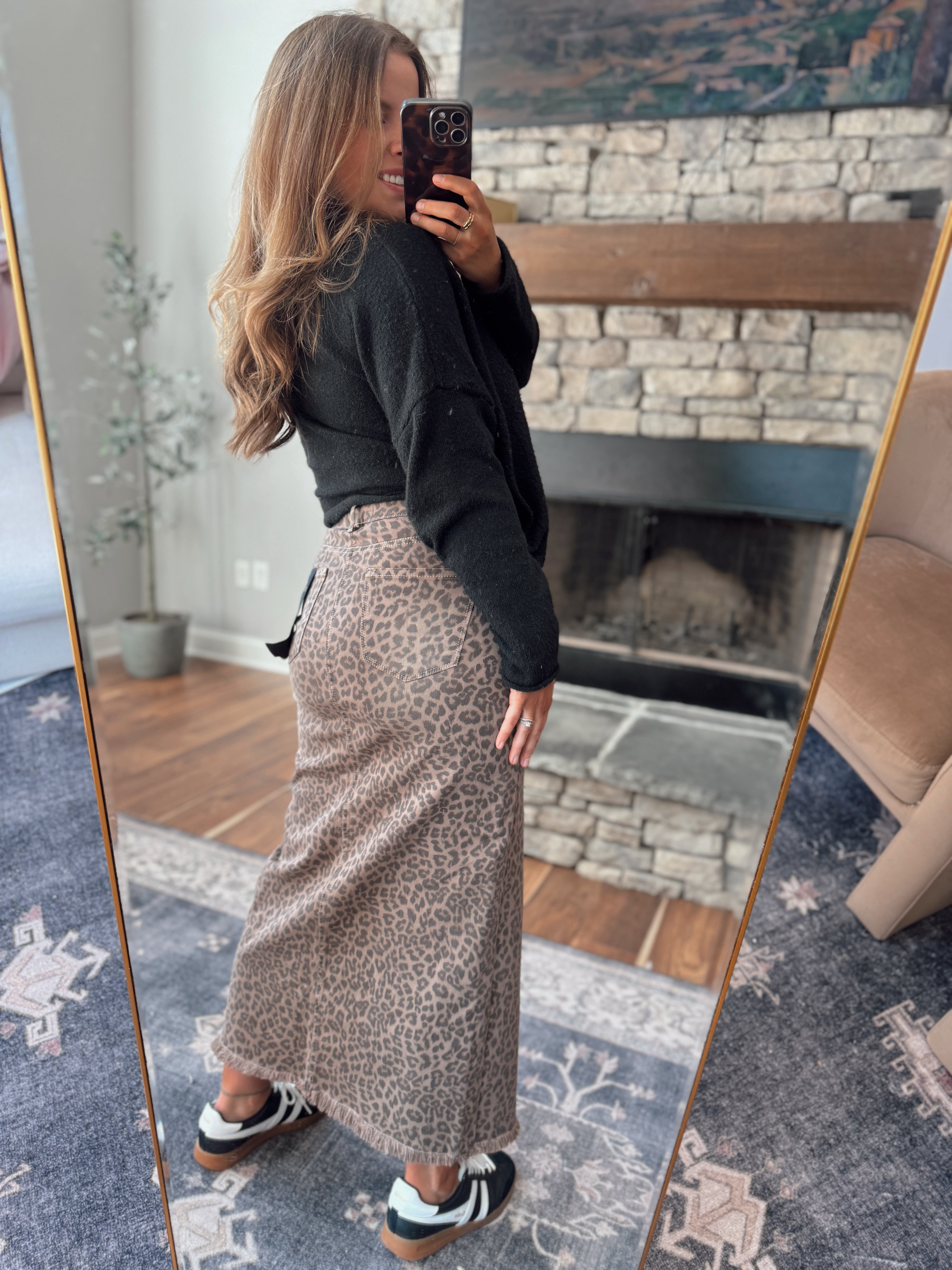 Risen Brown Leopard Denim Maxi Skirt