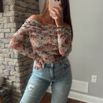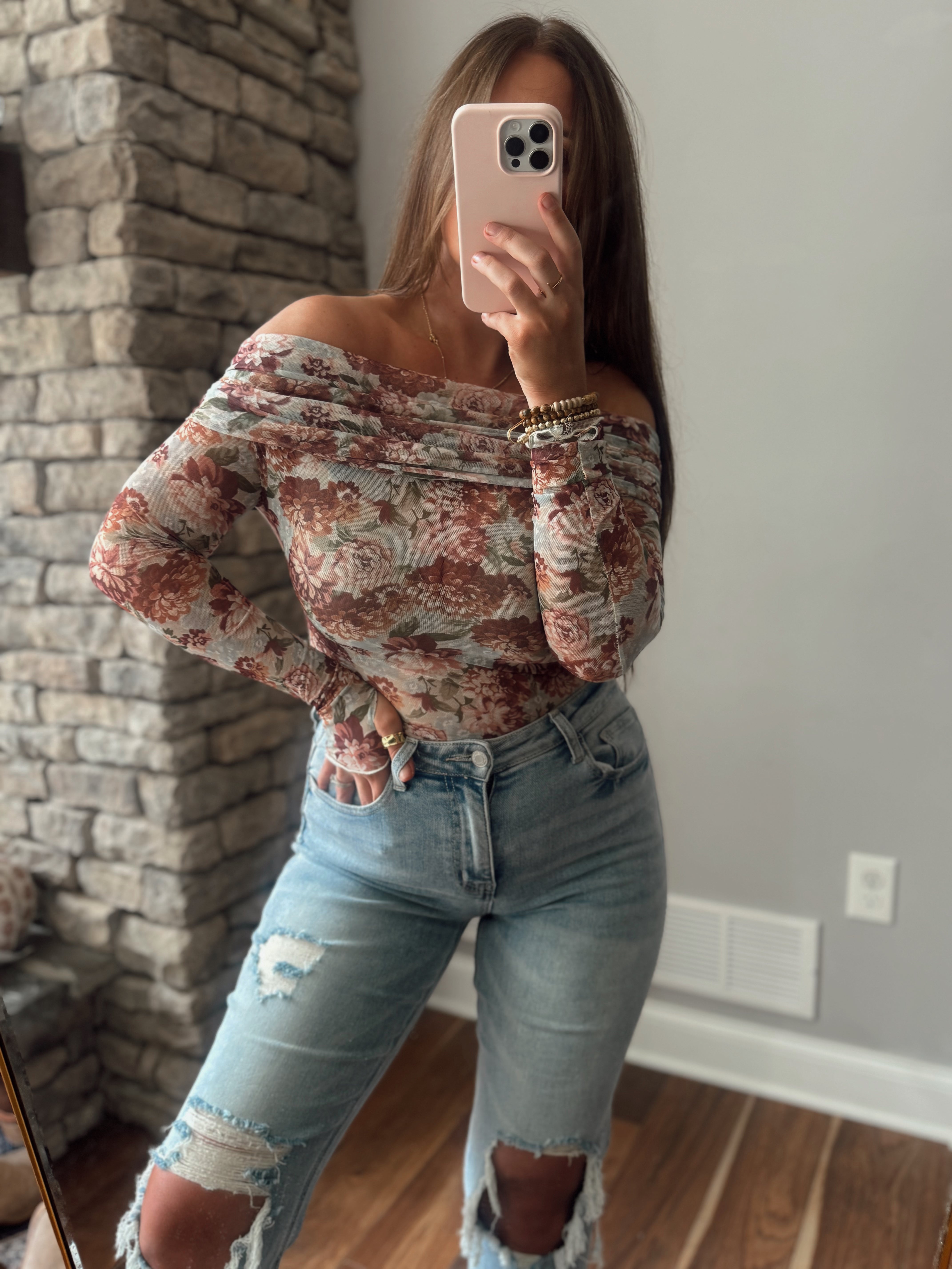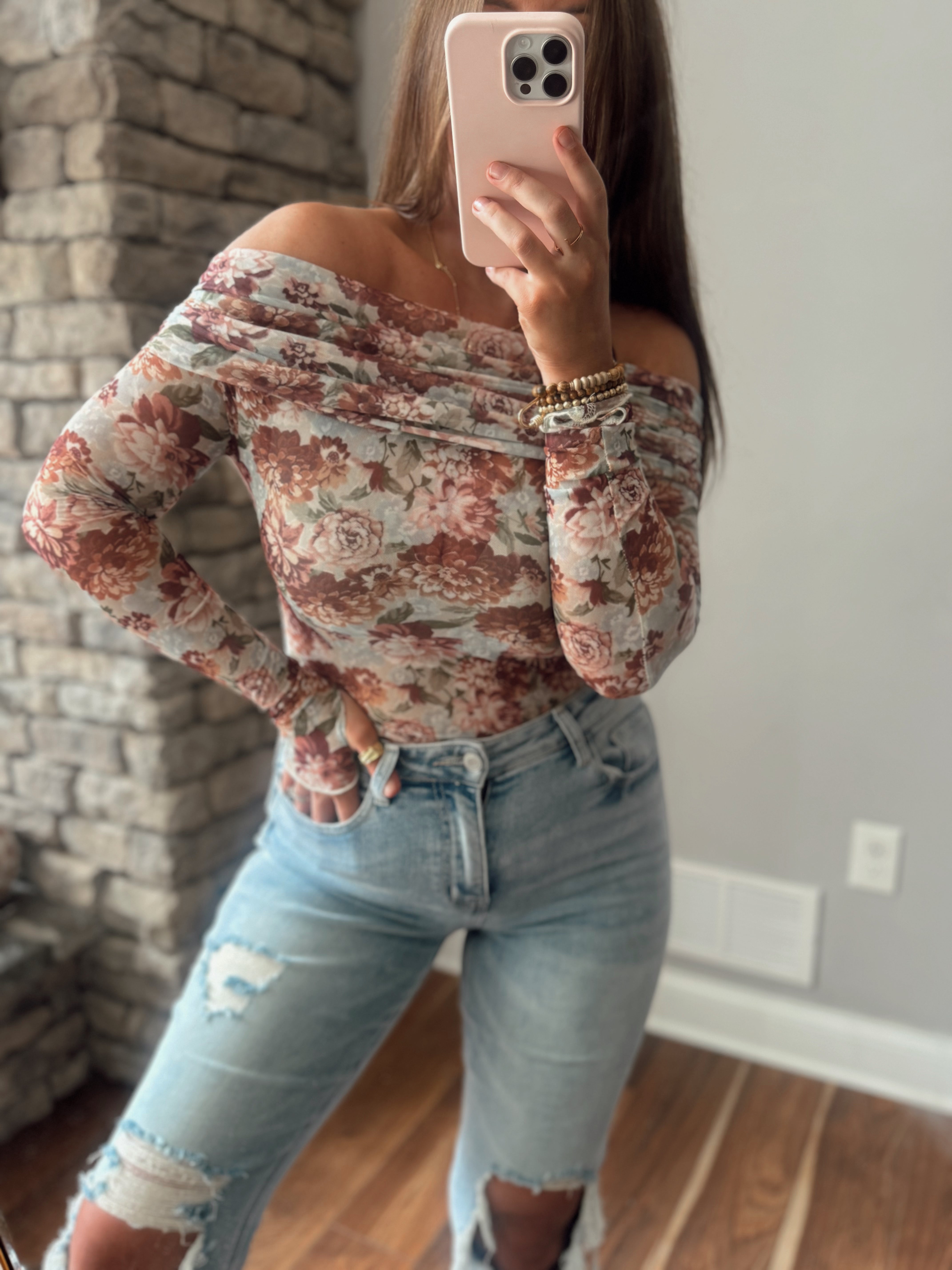 Romantic Floral Mesh Off-Shoulder Bodysuit