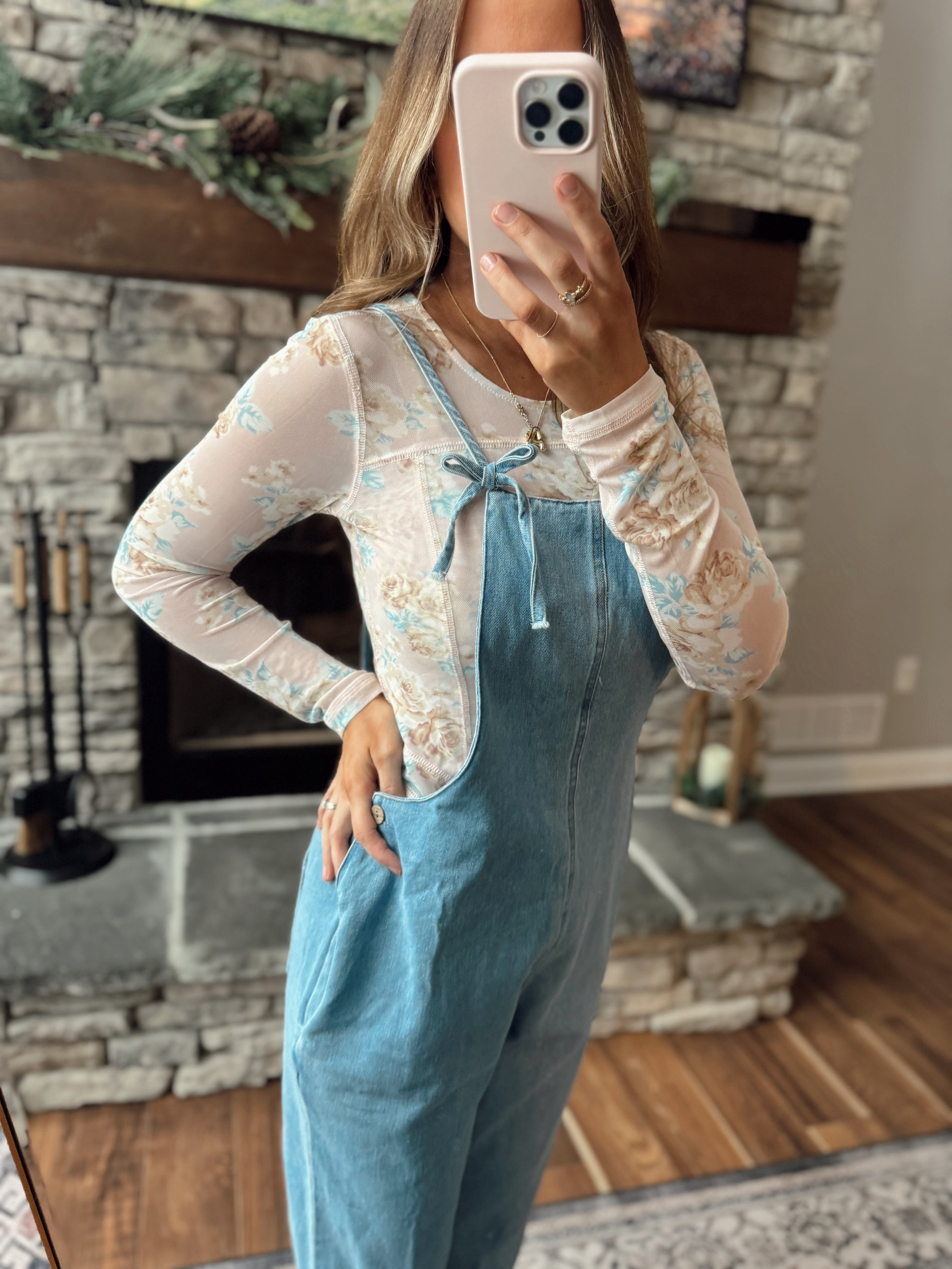 Rowan Blush Floral Mesh Fitted Long Sleeve