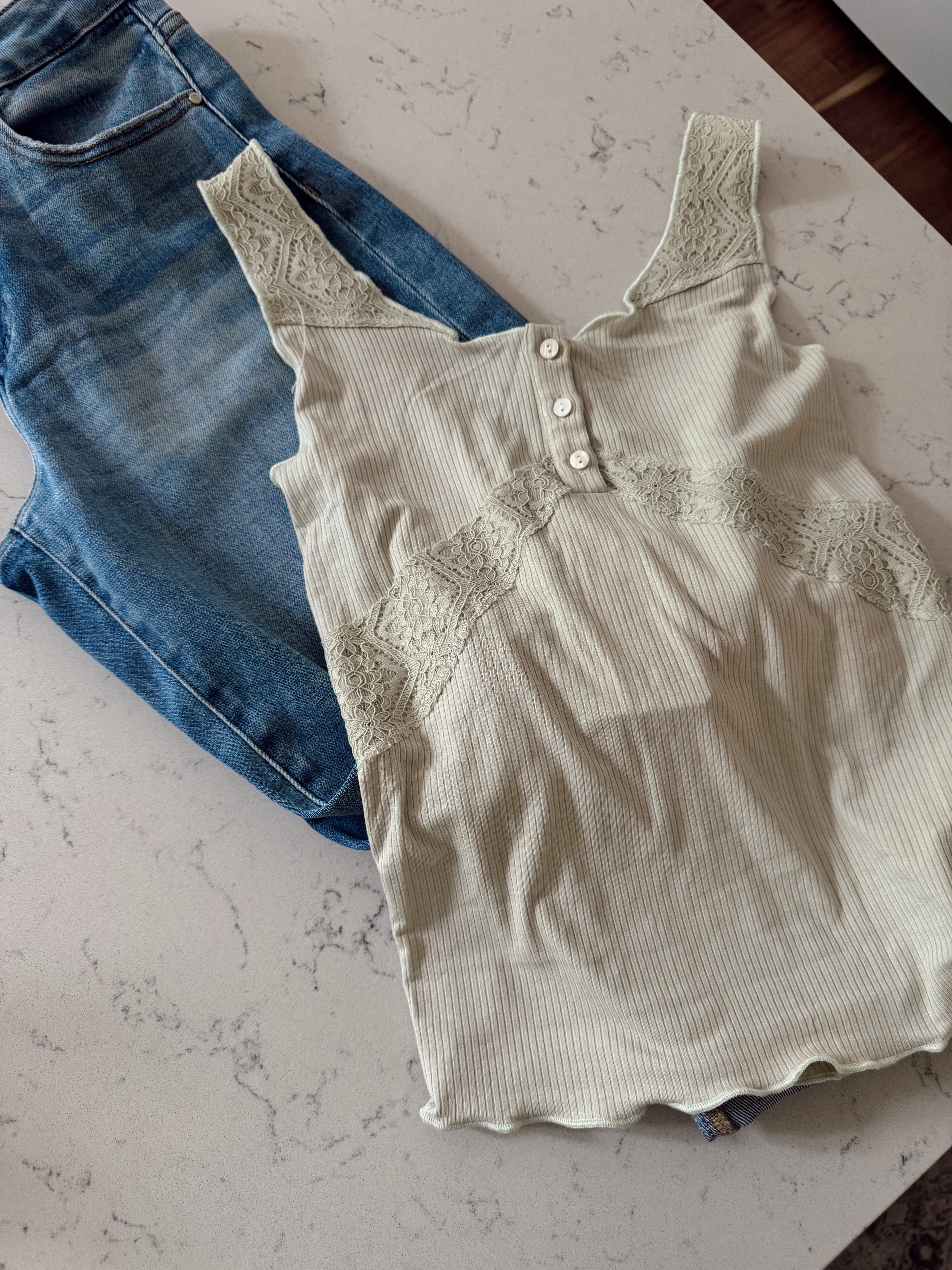 Sage Lace Contrast Cabbage Hem Tank