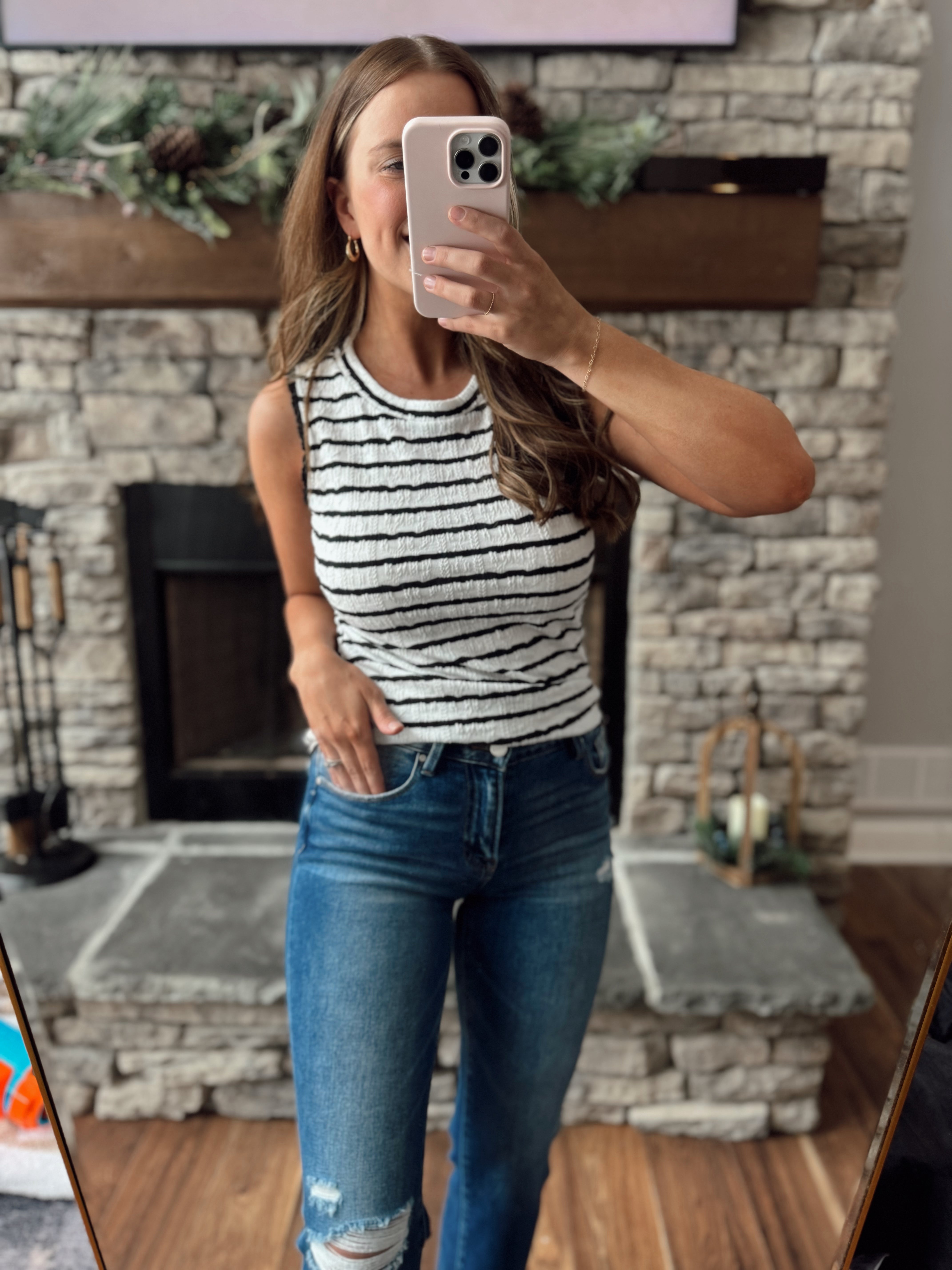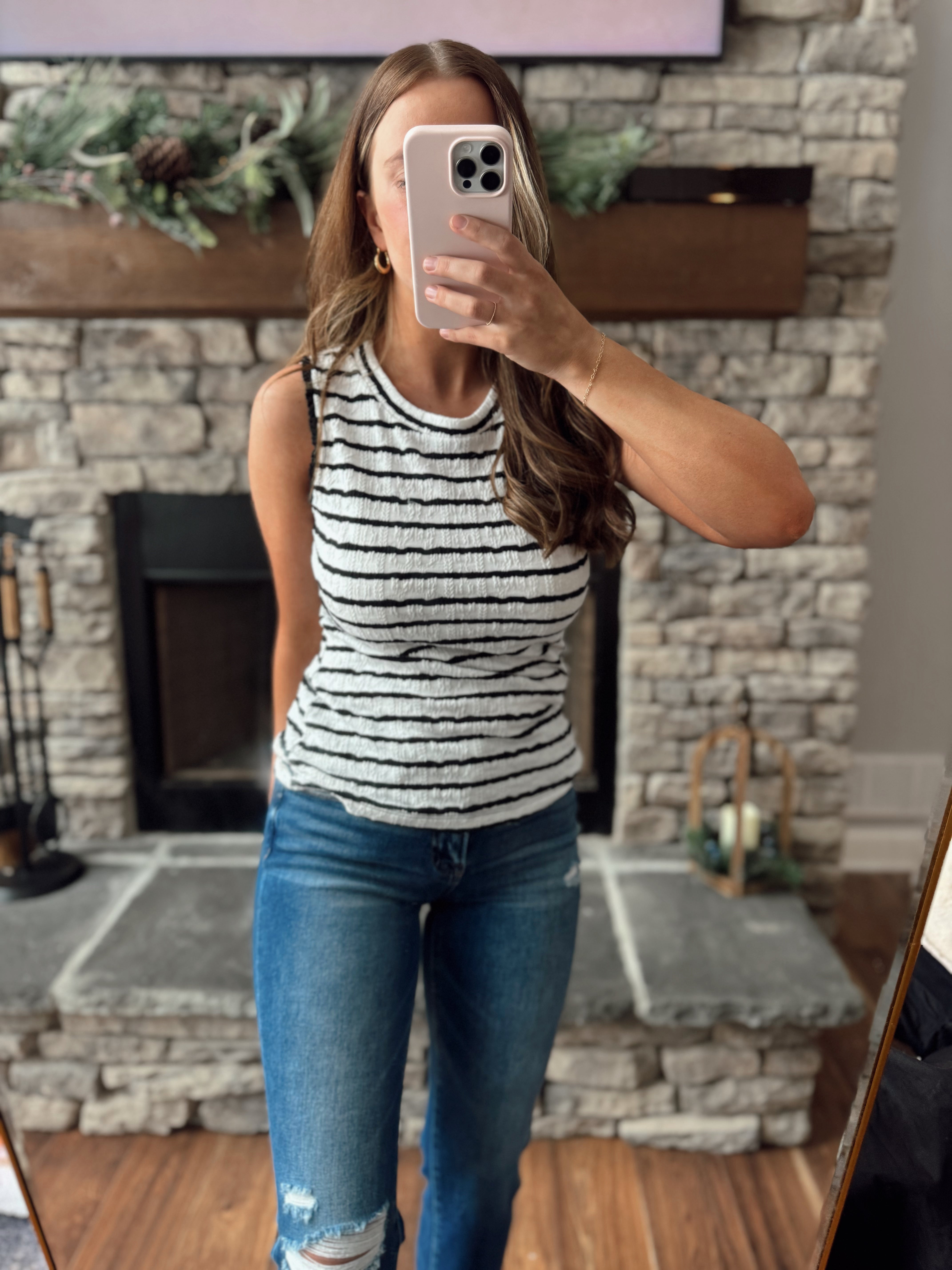 Sally Sue Black/White Textured Striped Tank Top