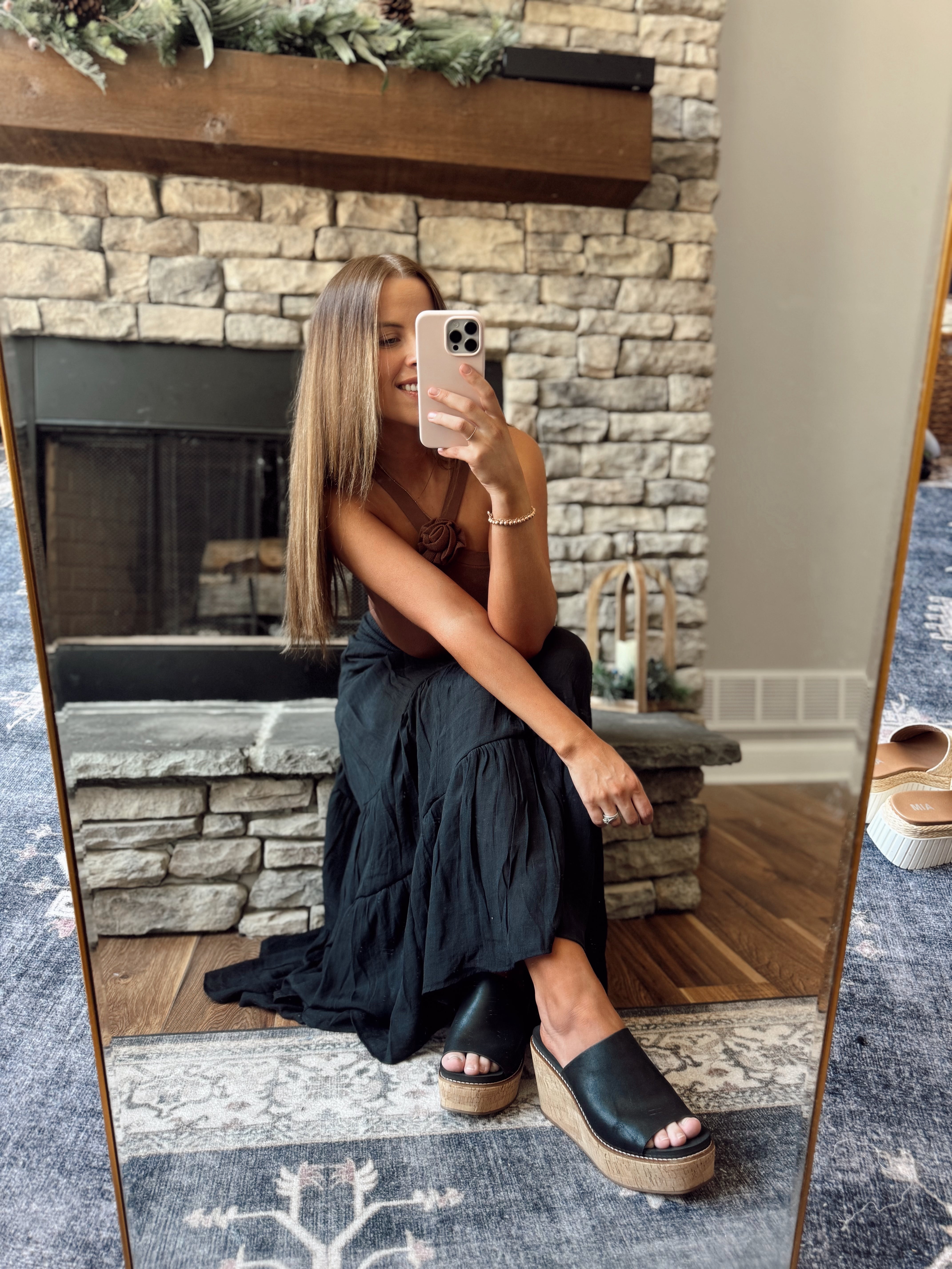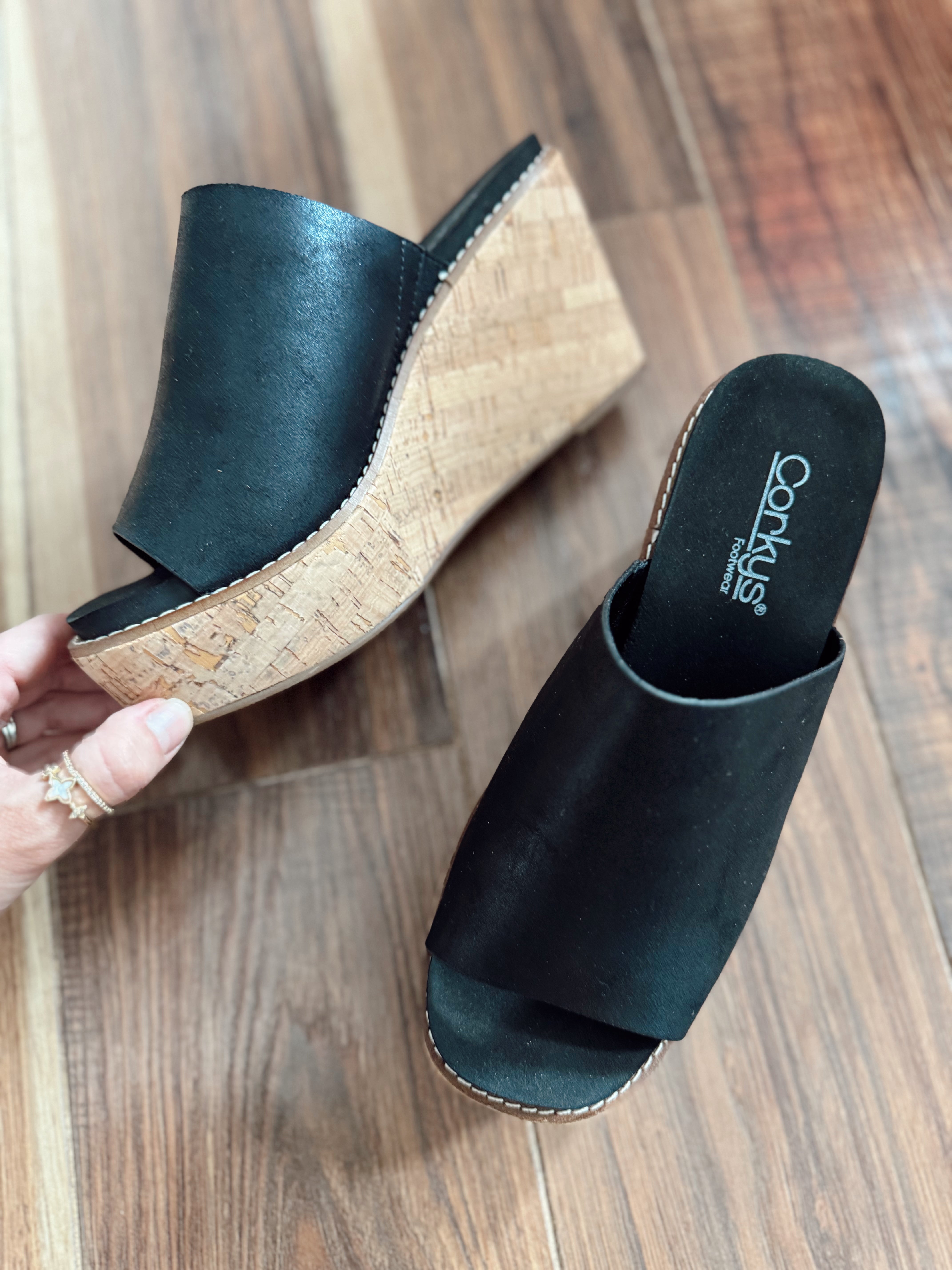 Sandra Black Slip On Wedge Heels