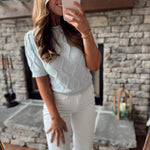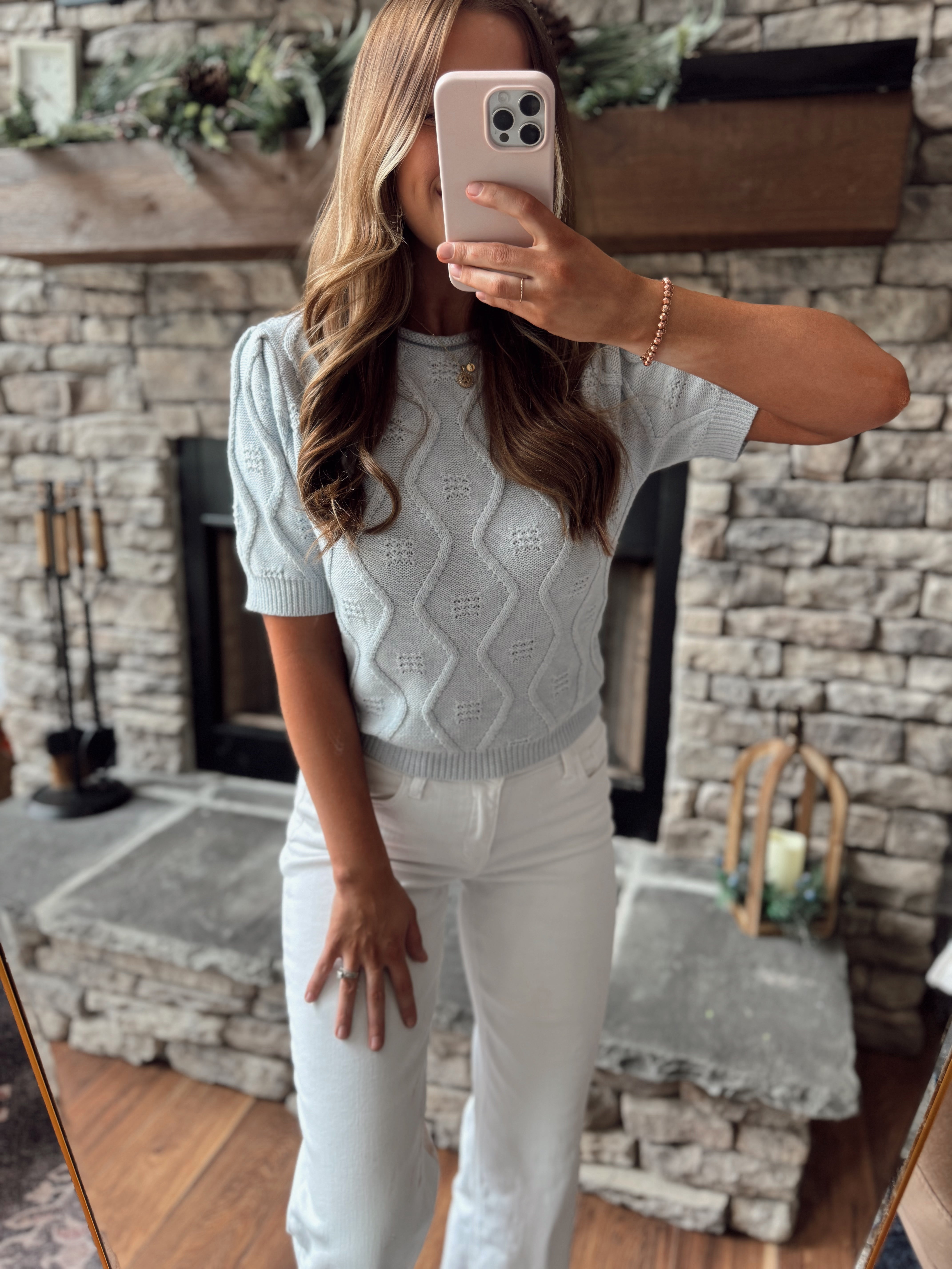 Satin Blue Layne Textured Puff Lightweight Knit Sweater Top