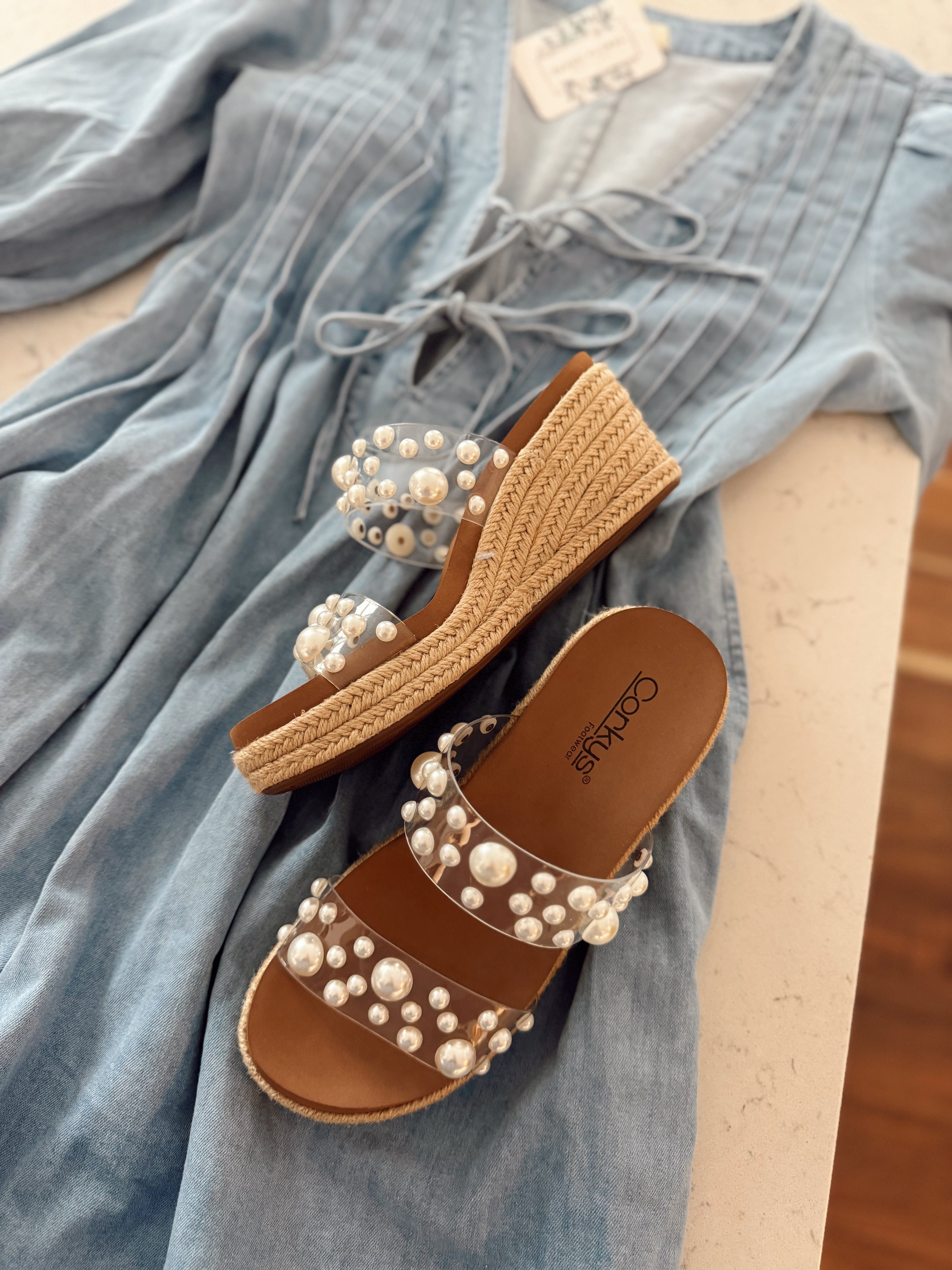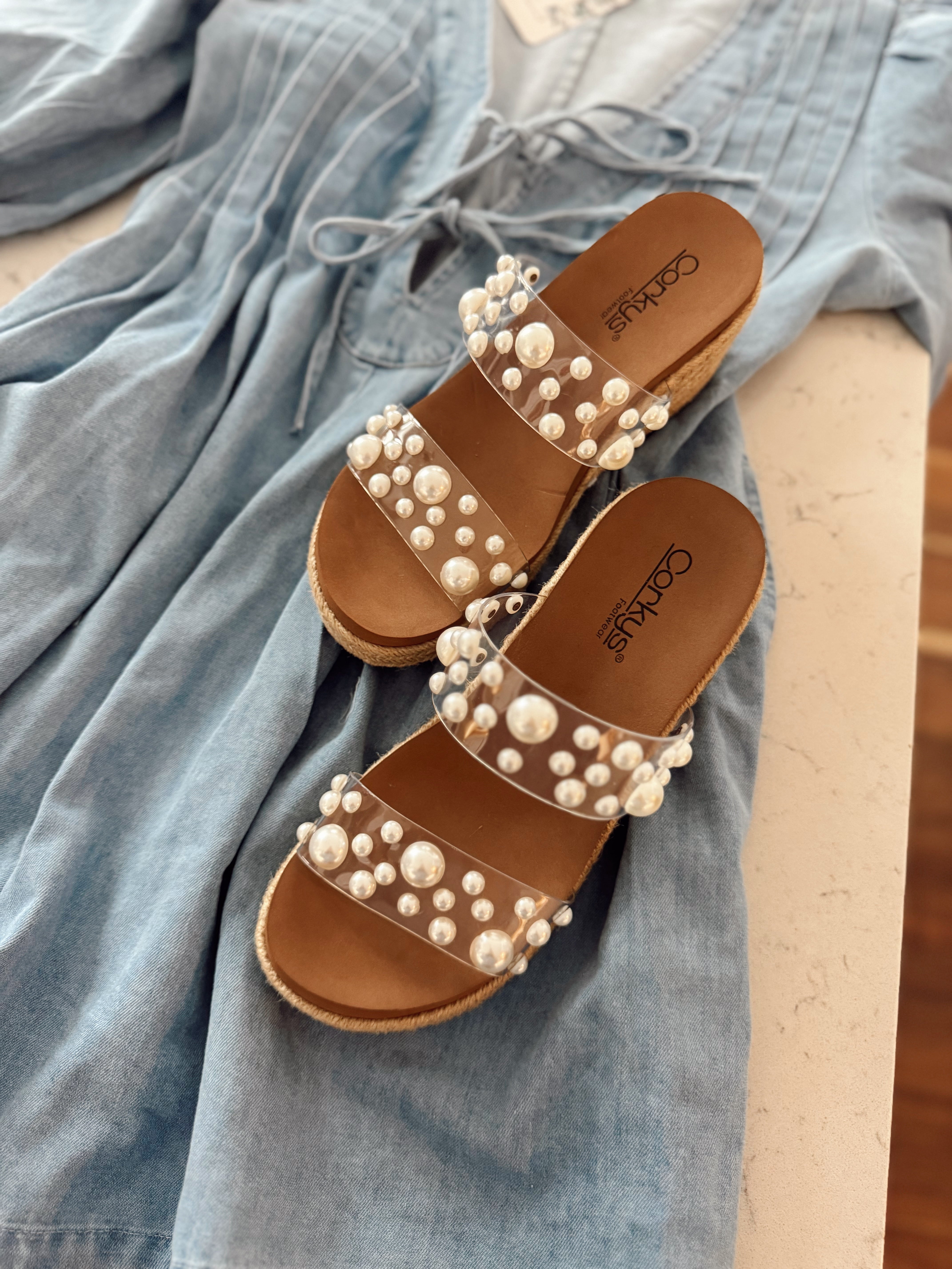 Get ready for summer with these Corky's Clear She's Here Sandals! These stylish sandals feature a comfortable slide in wedge and braided covered cork for a chic look. The clear strap details are adorned with pearls, adding a touch of elegance. And with Corky's famous foam footbed, your feet will feel pampered all day long!