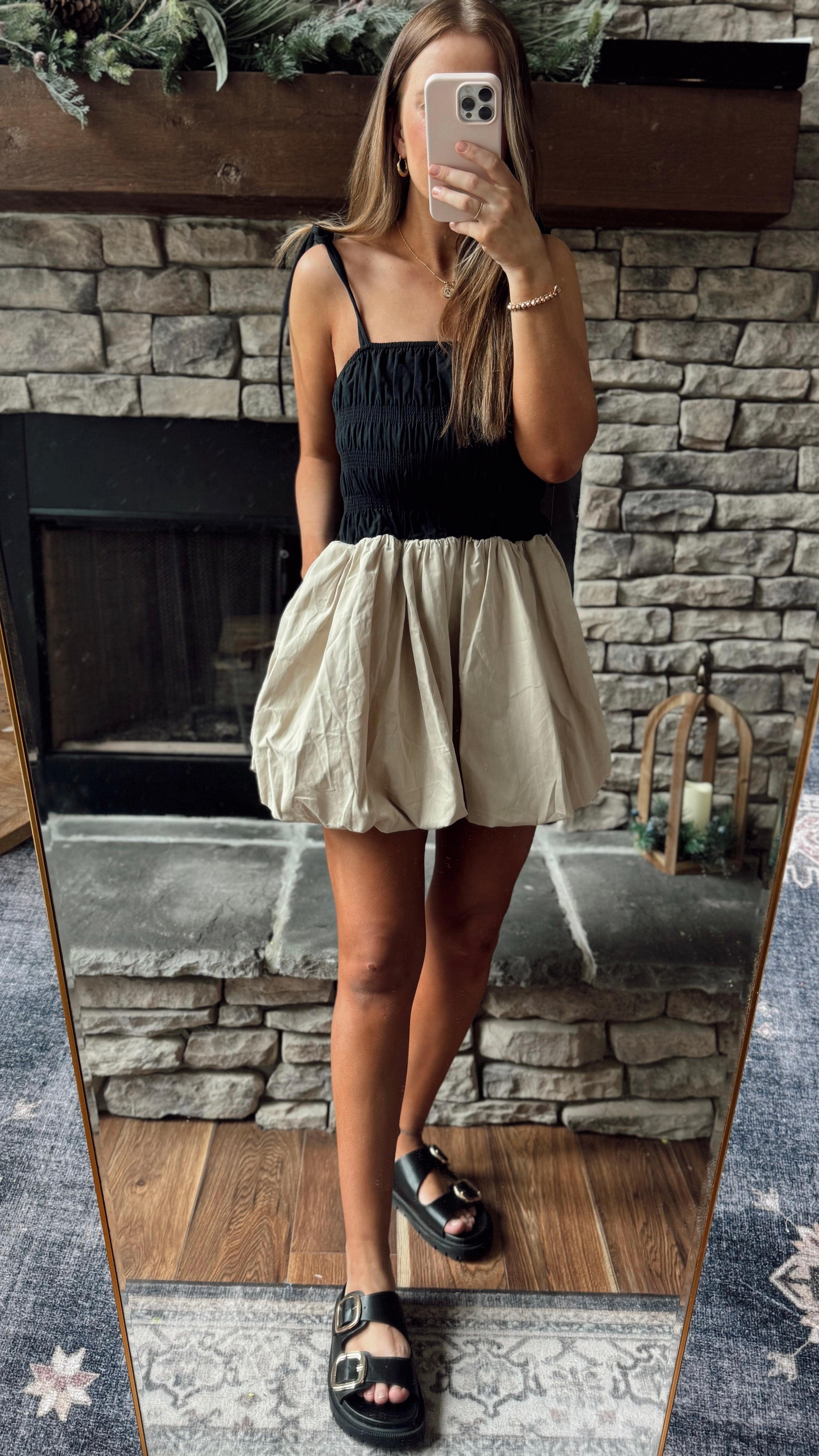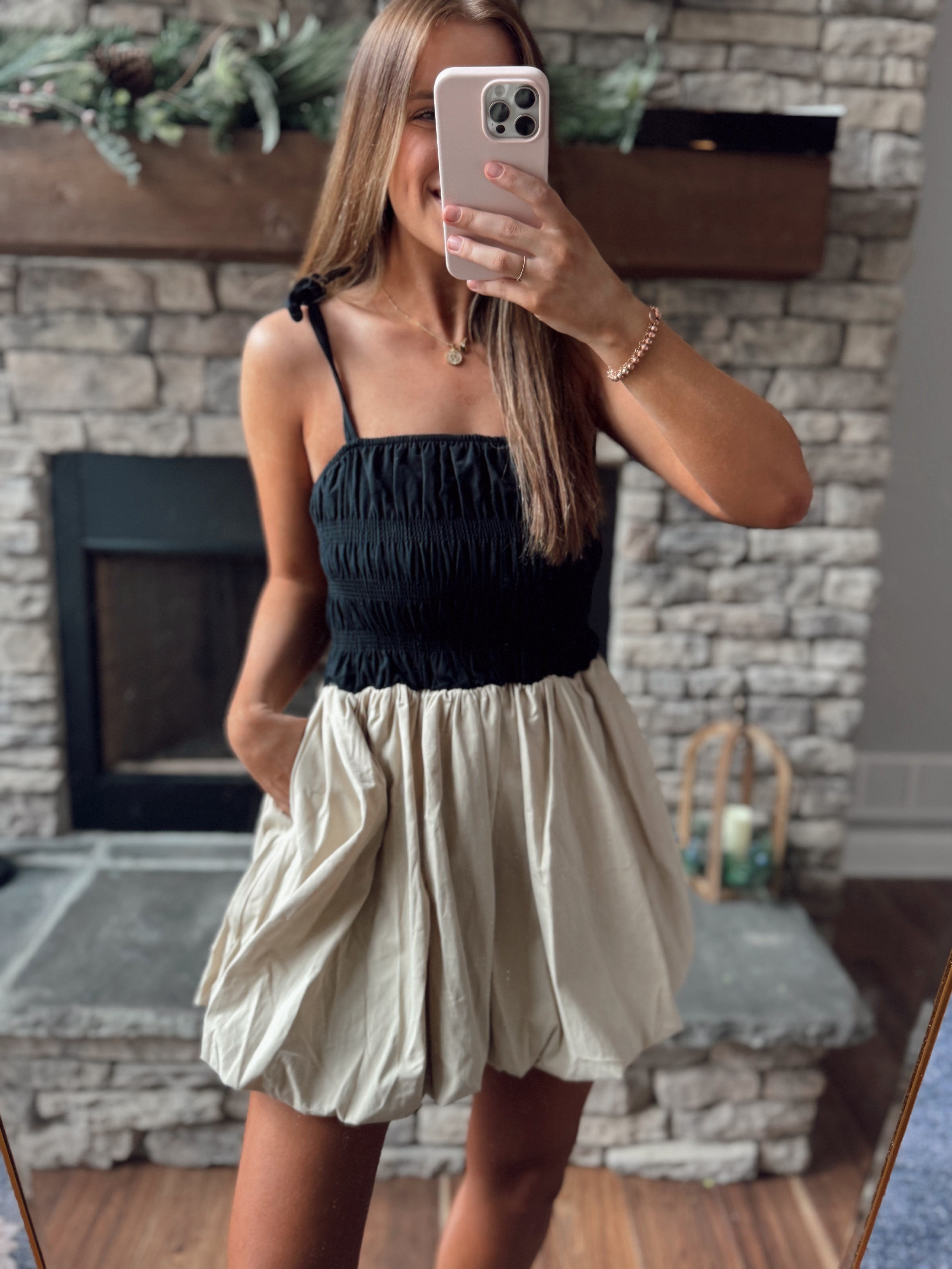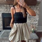 She's The One Tan/Black Contrast Top Balloon Skirt Mini