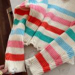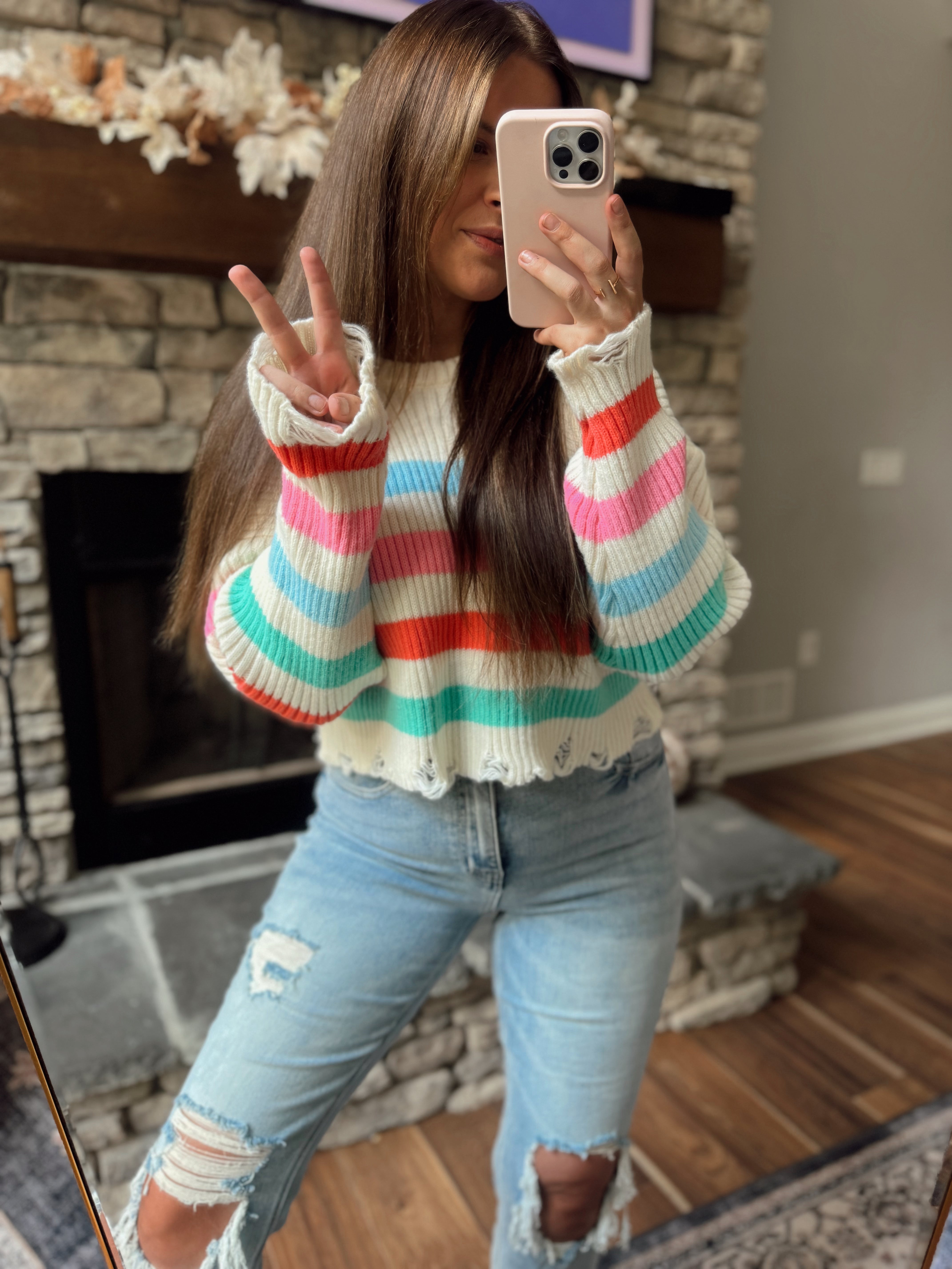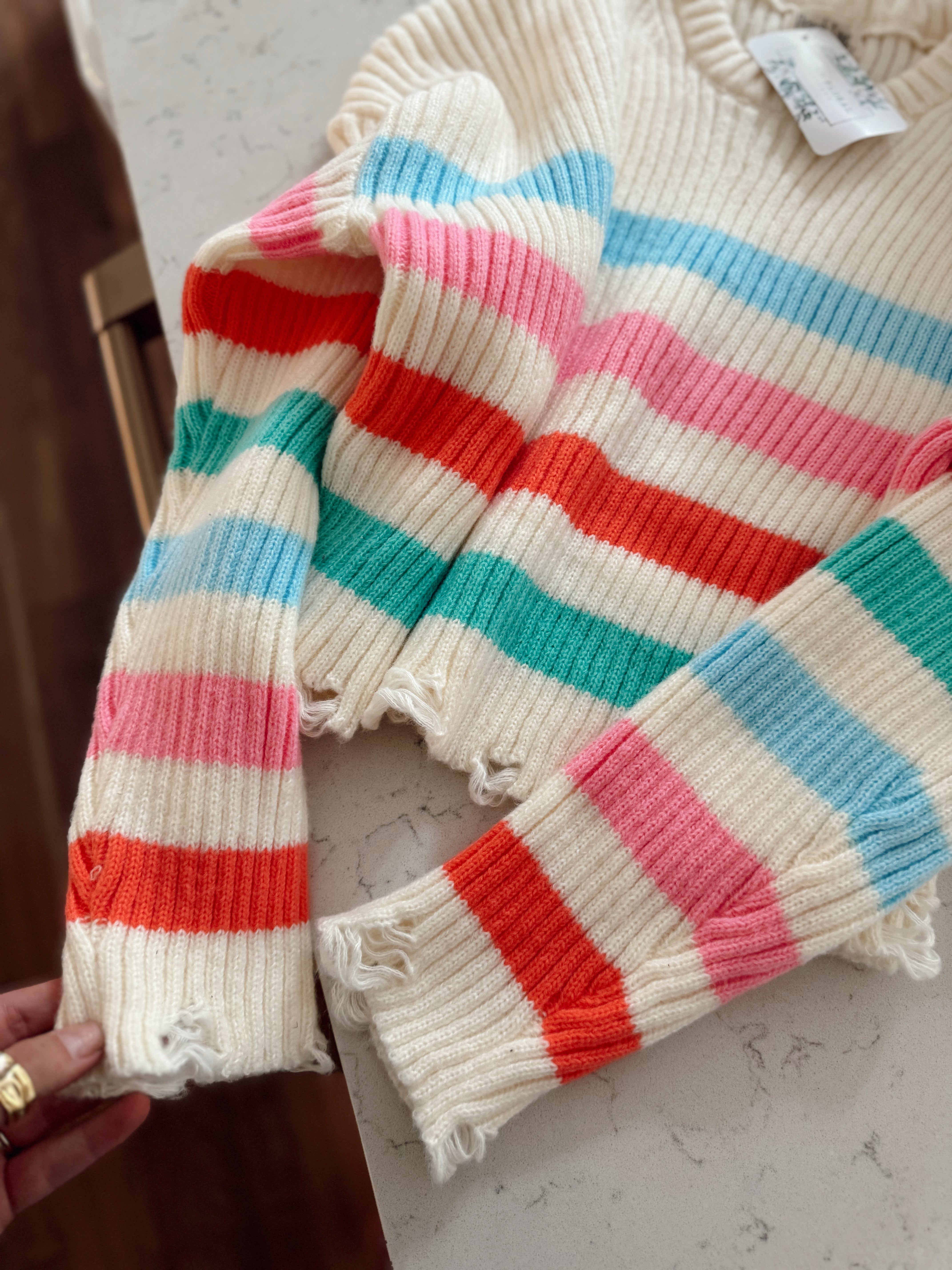 Simple The Sweetest Ivory Multi Cropped Distressed Hem Sweater