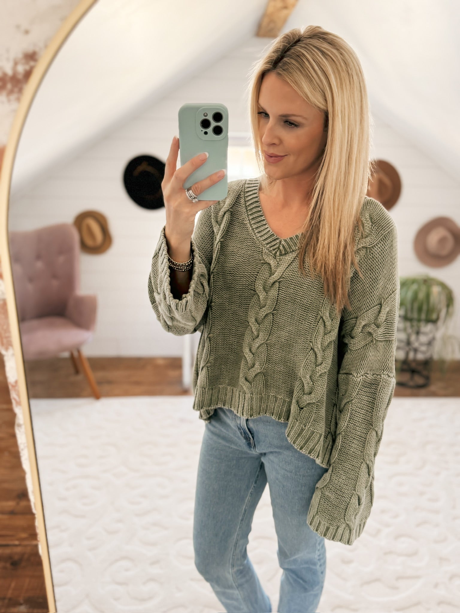 Love the subtle yet thick cable knit detail throughout! More of an oversized fit. Can size down.