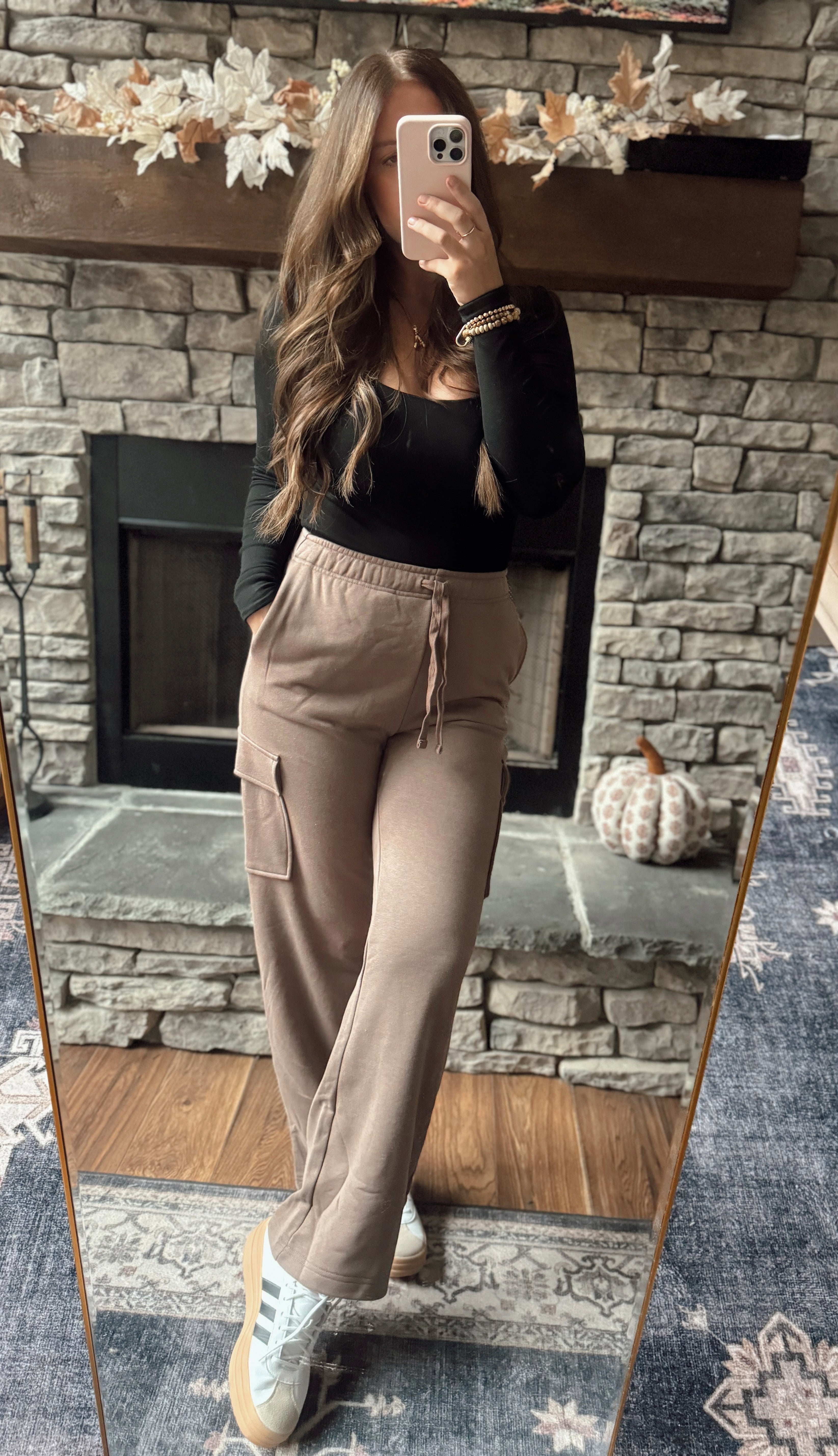 Smoky Brown Chill Weekend French Terry Straight Leg Cargo Sweats