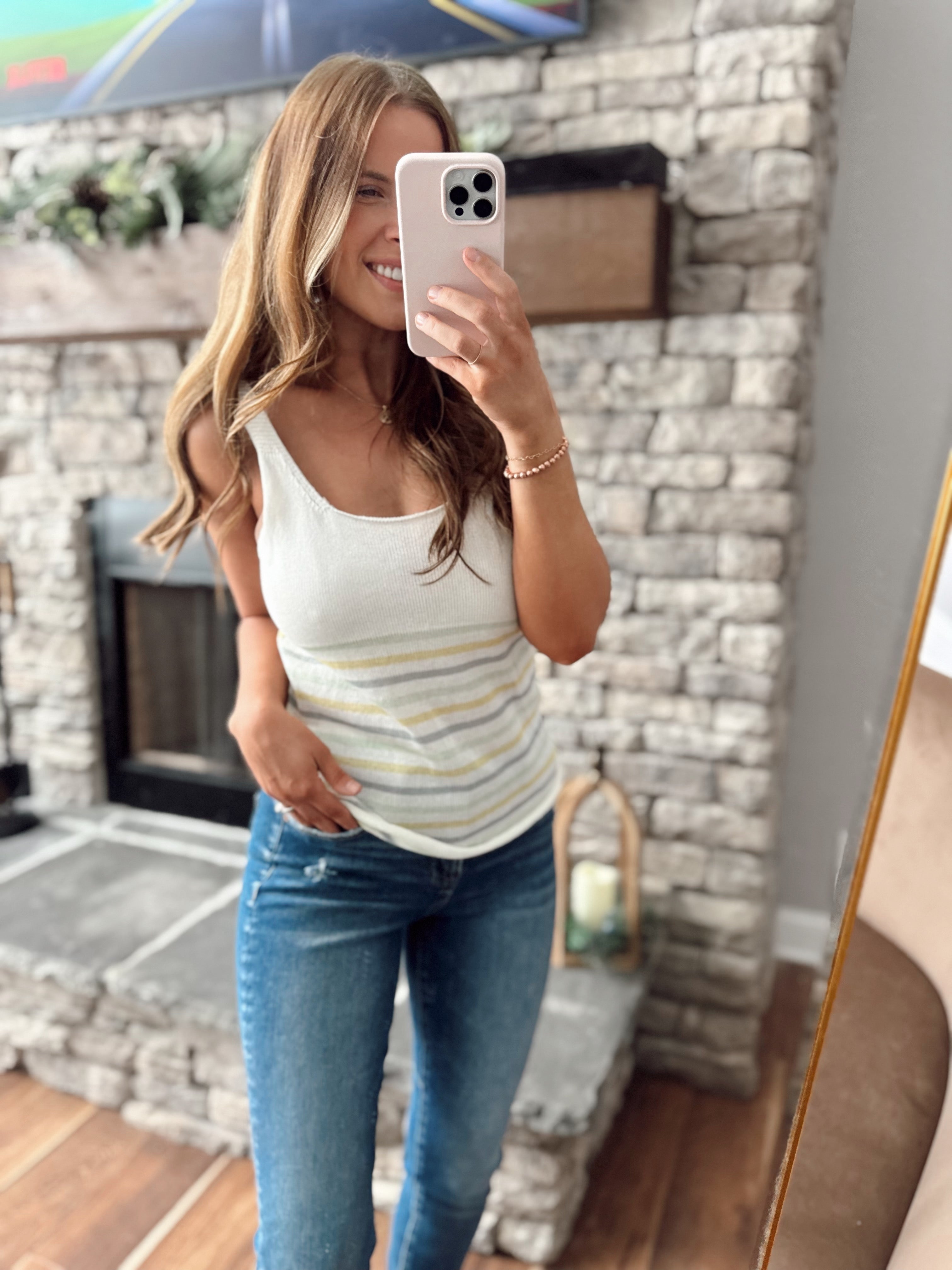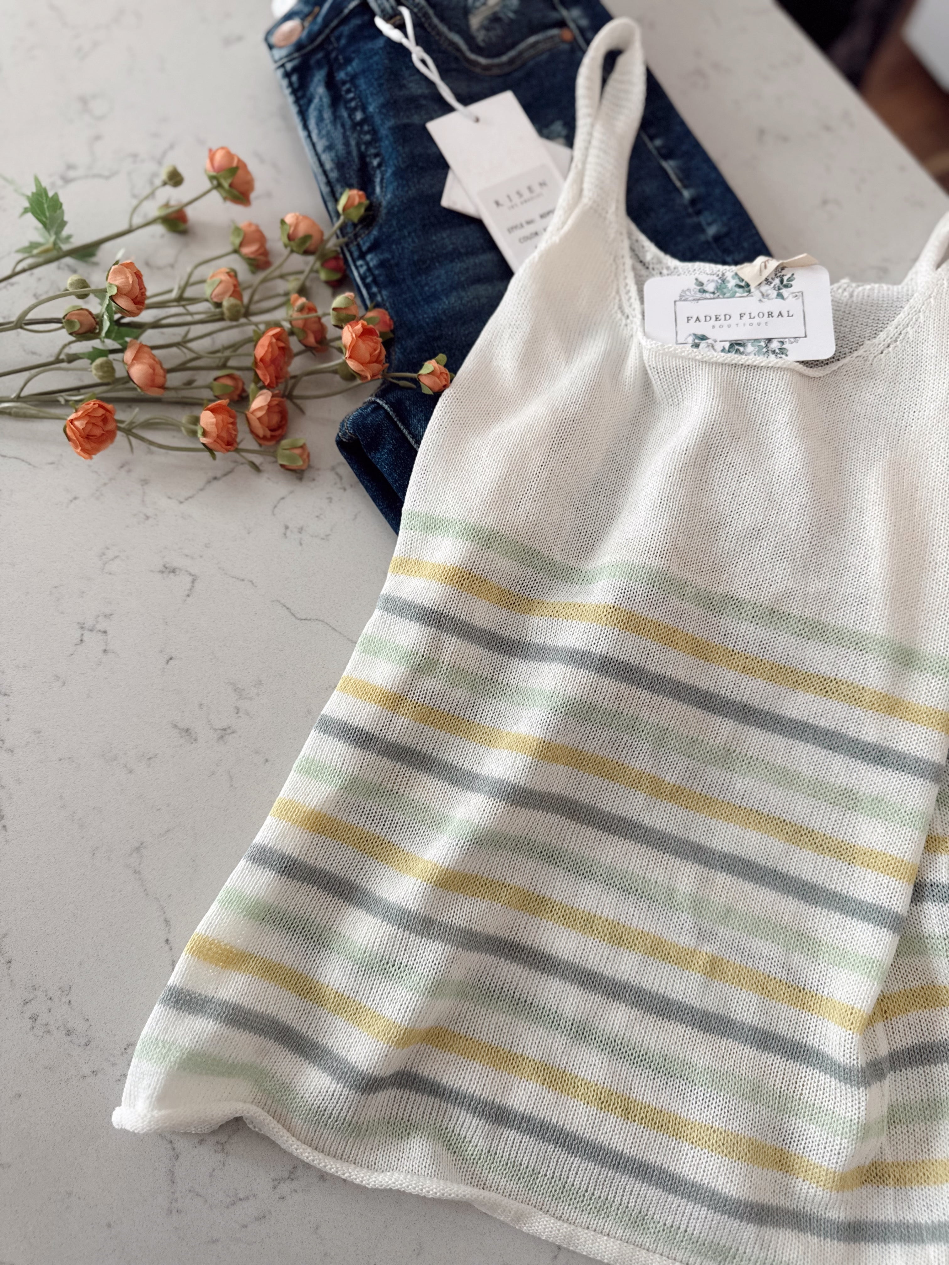 So Mello Ivory Multi Stripe Knit Tank