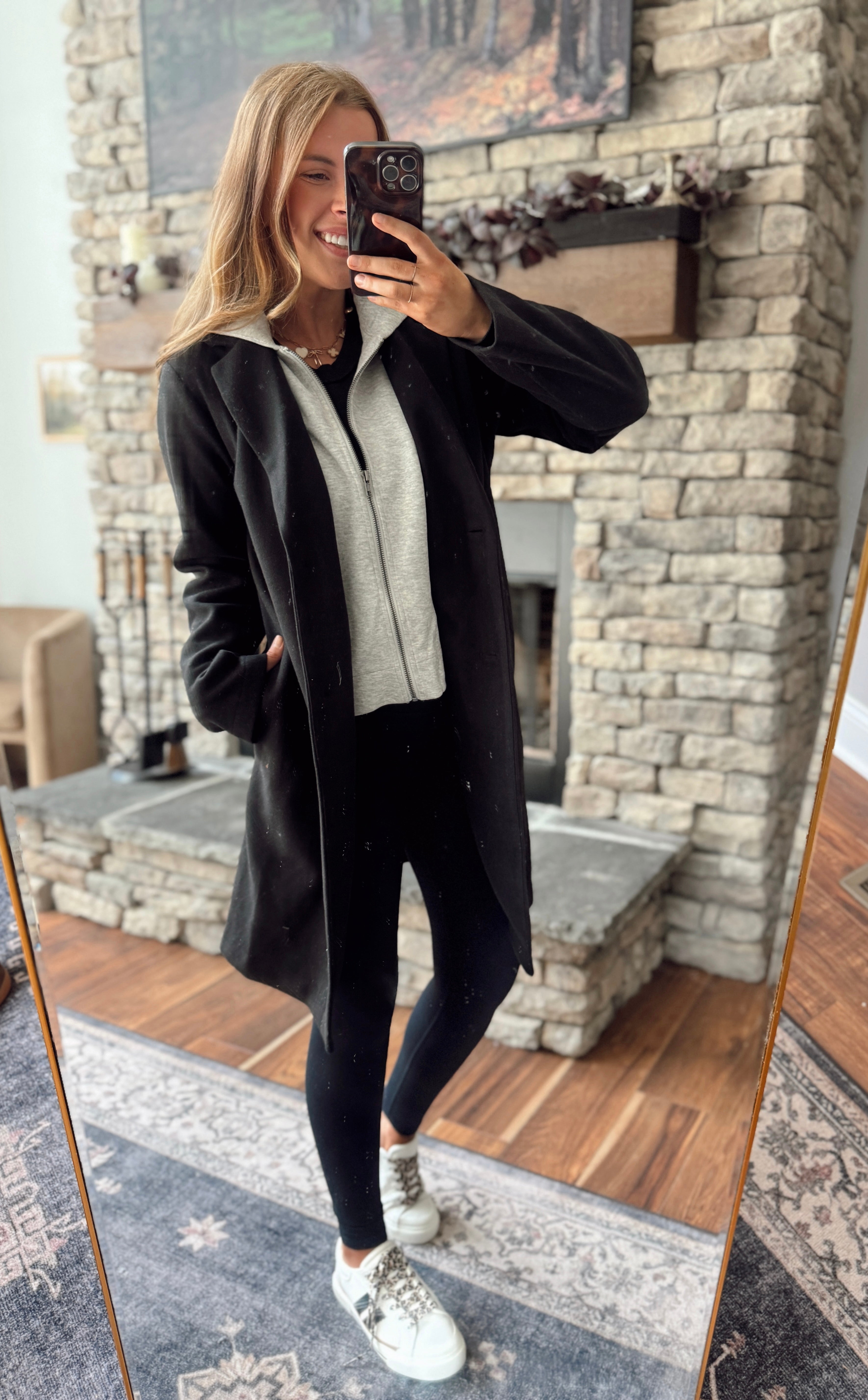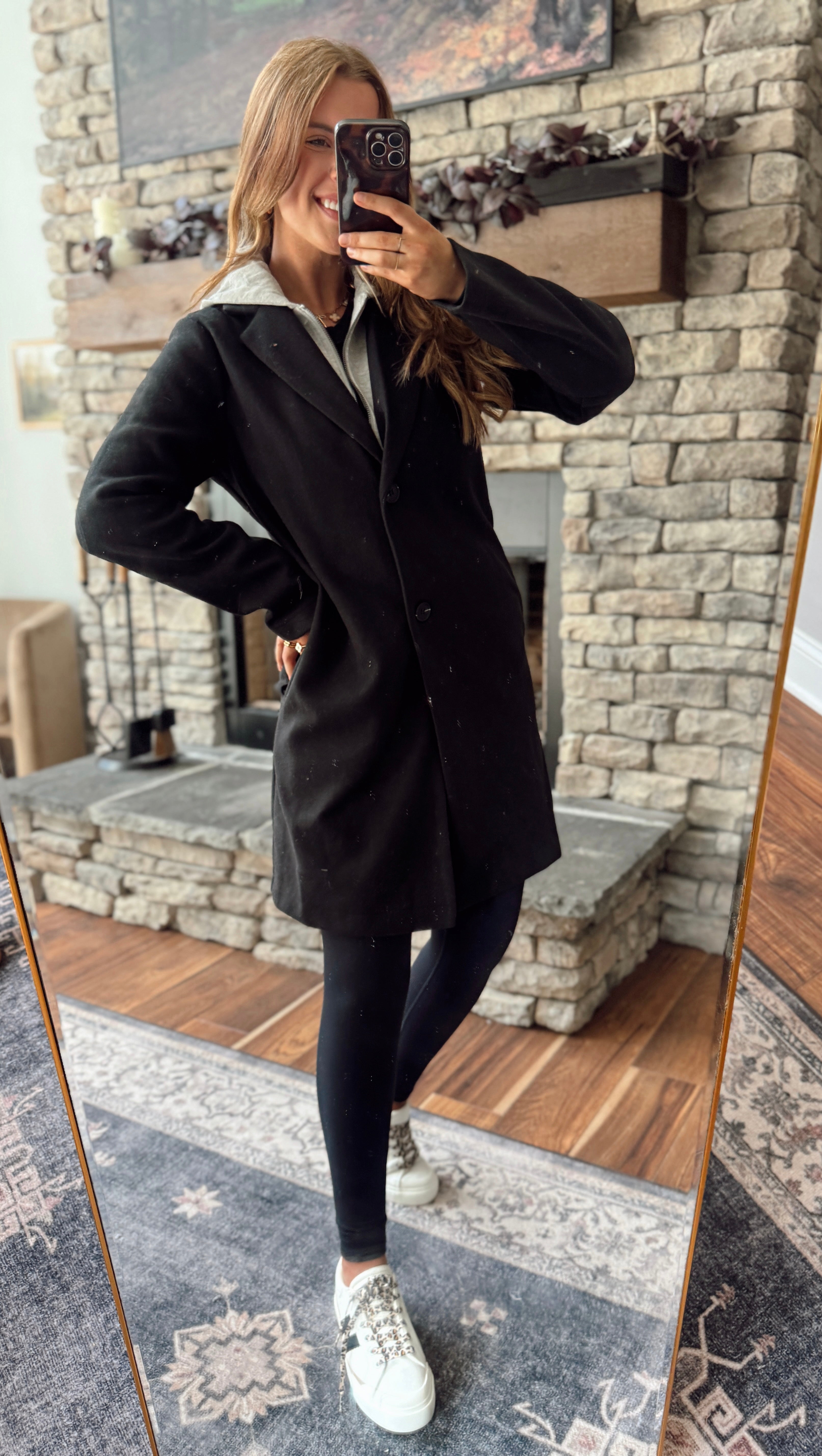 Two looks in one ✨ This layered coat gives you that chic polished feel with the practicality you’ll actually use. Designed with a built-in hoodie insert (yes, the hood works!), it layers like a dream without the bulk. Toss it on with leggings and sneakers for errands, or dress it up over denim and boots for a night out.