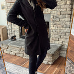 - Classic longline coat with button front