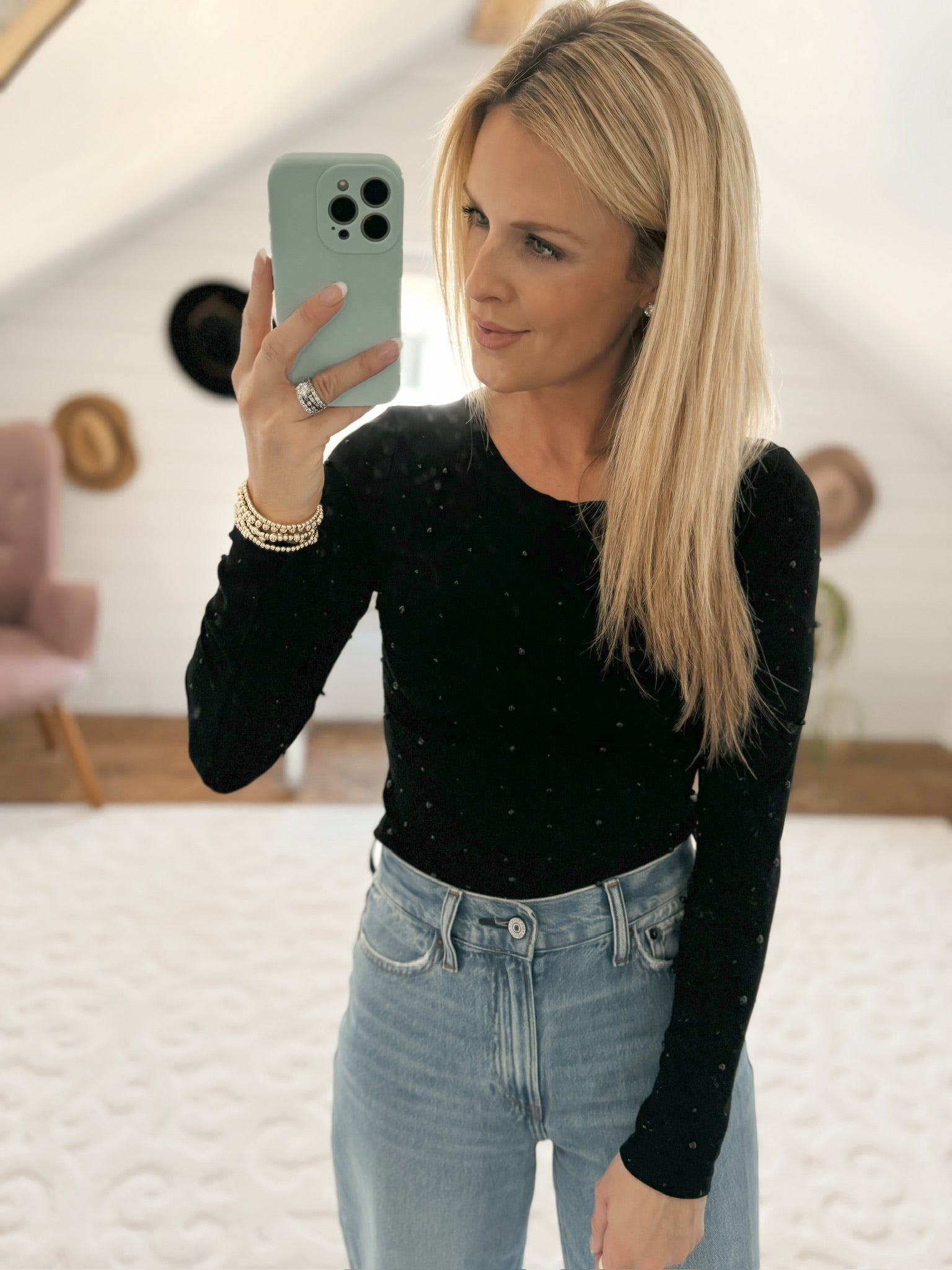 Star Studded Black Pearl Long Sleeve Top