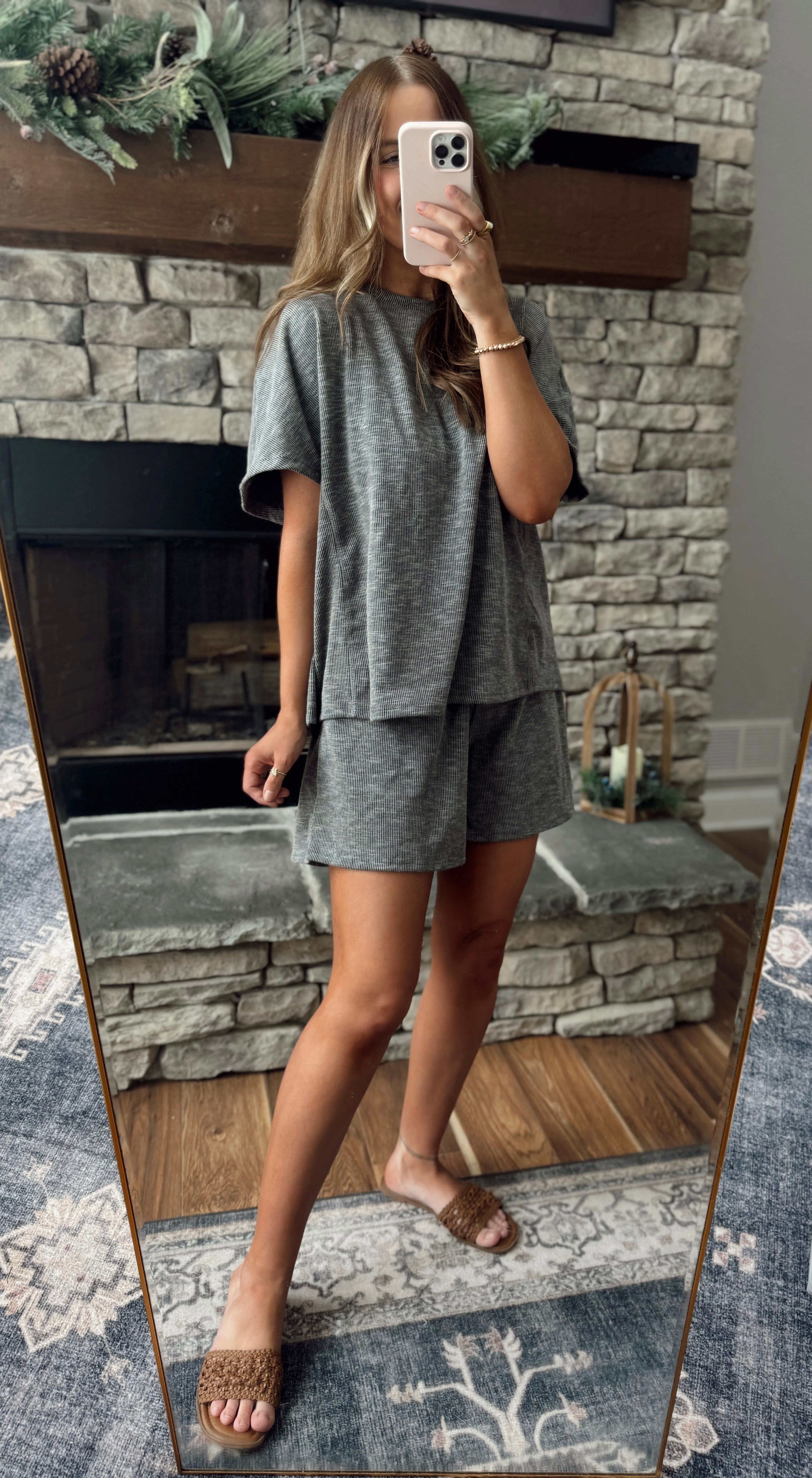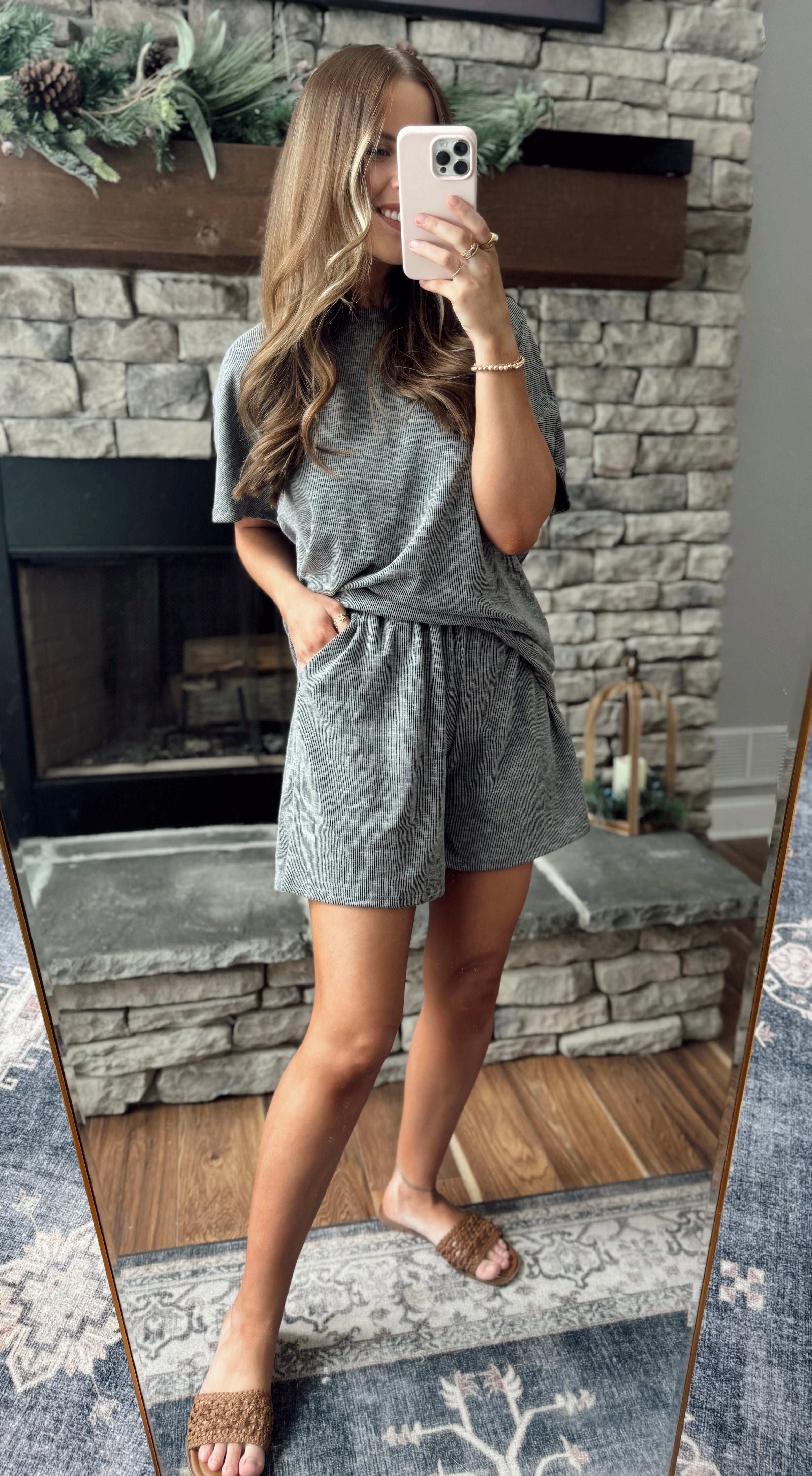 Stella Charcoal 2 Piece Short Sleeve & Short Lounge Set