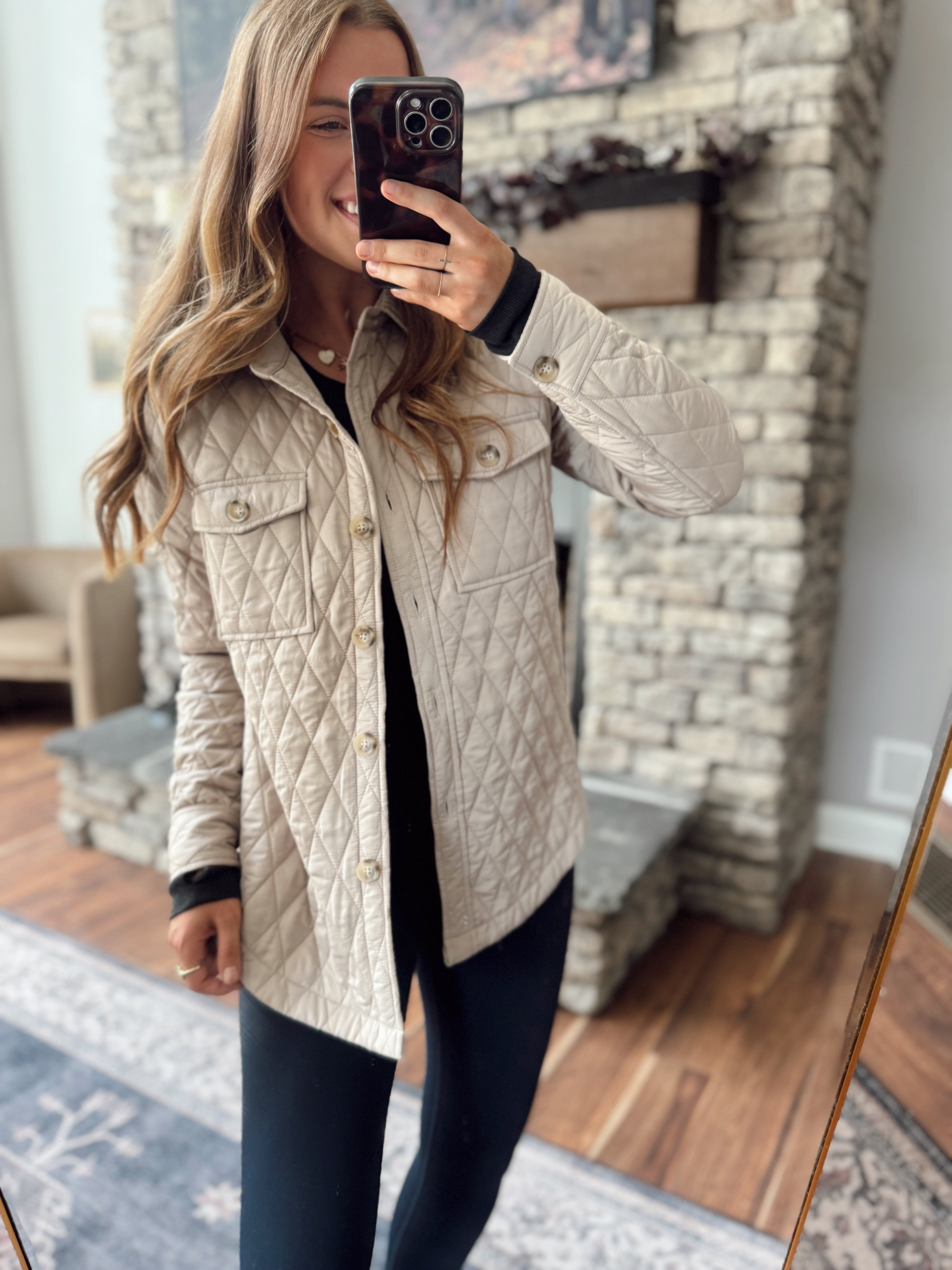 Stone Cold Taupe Quilted Shacket