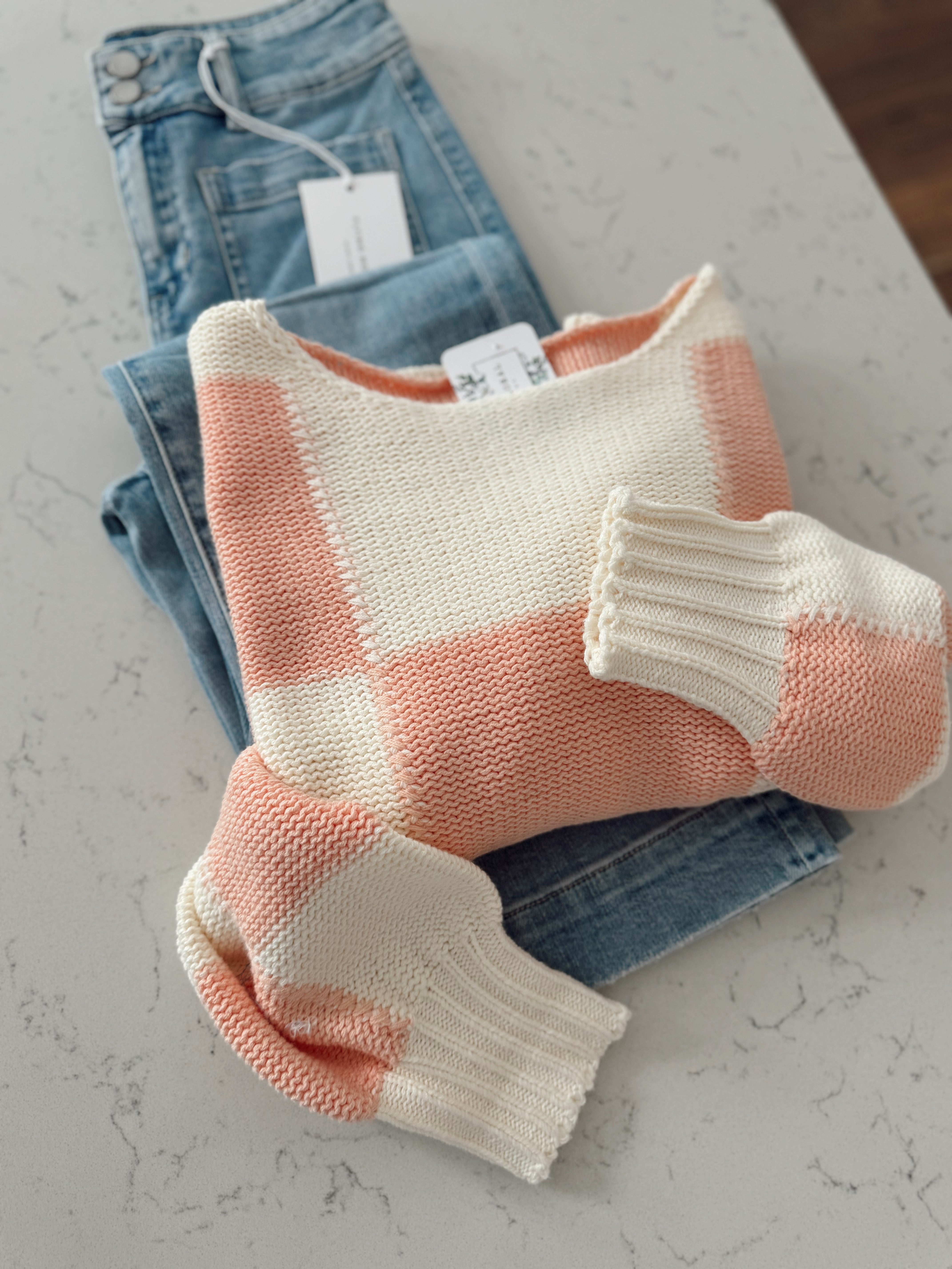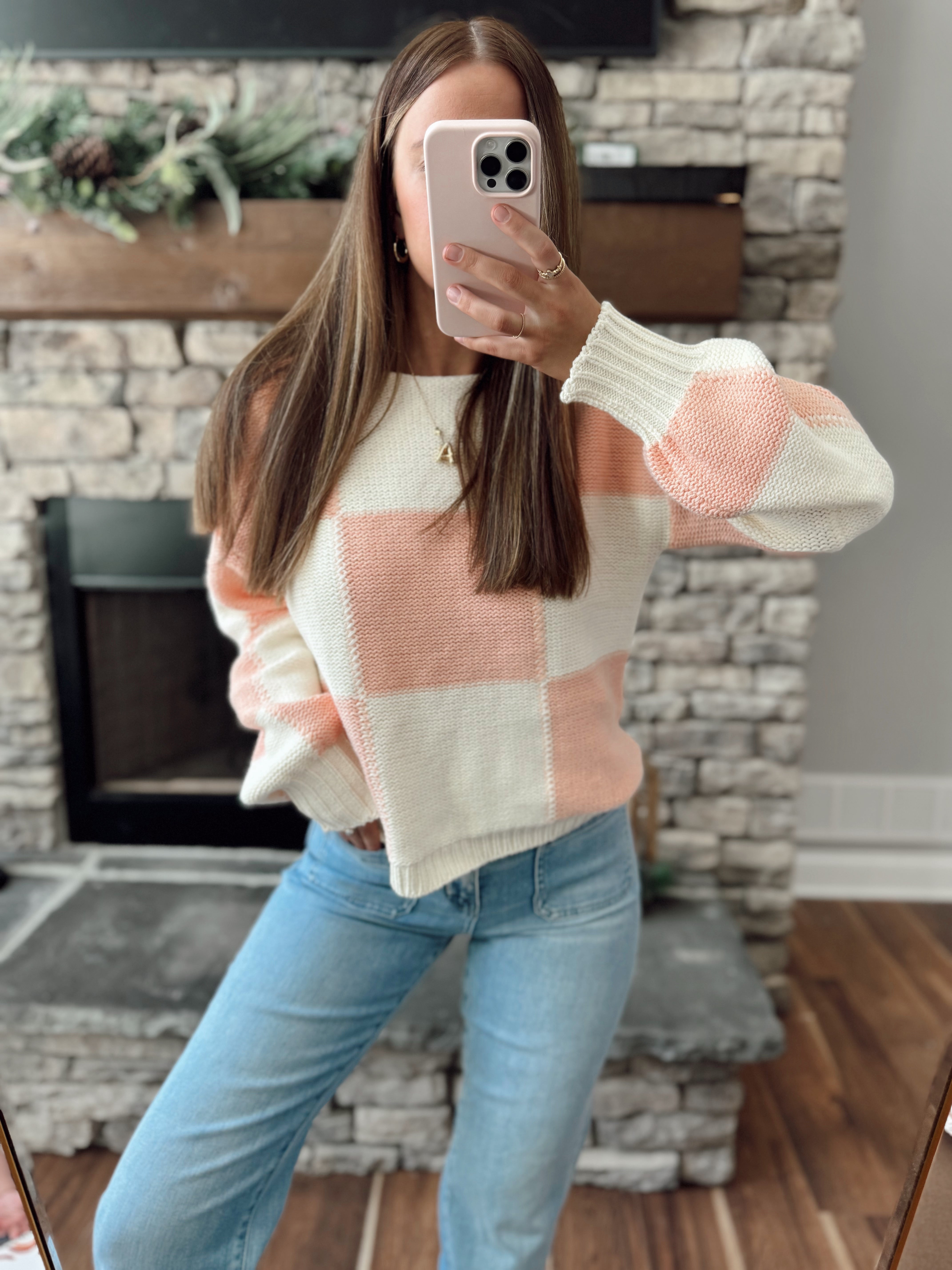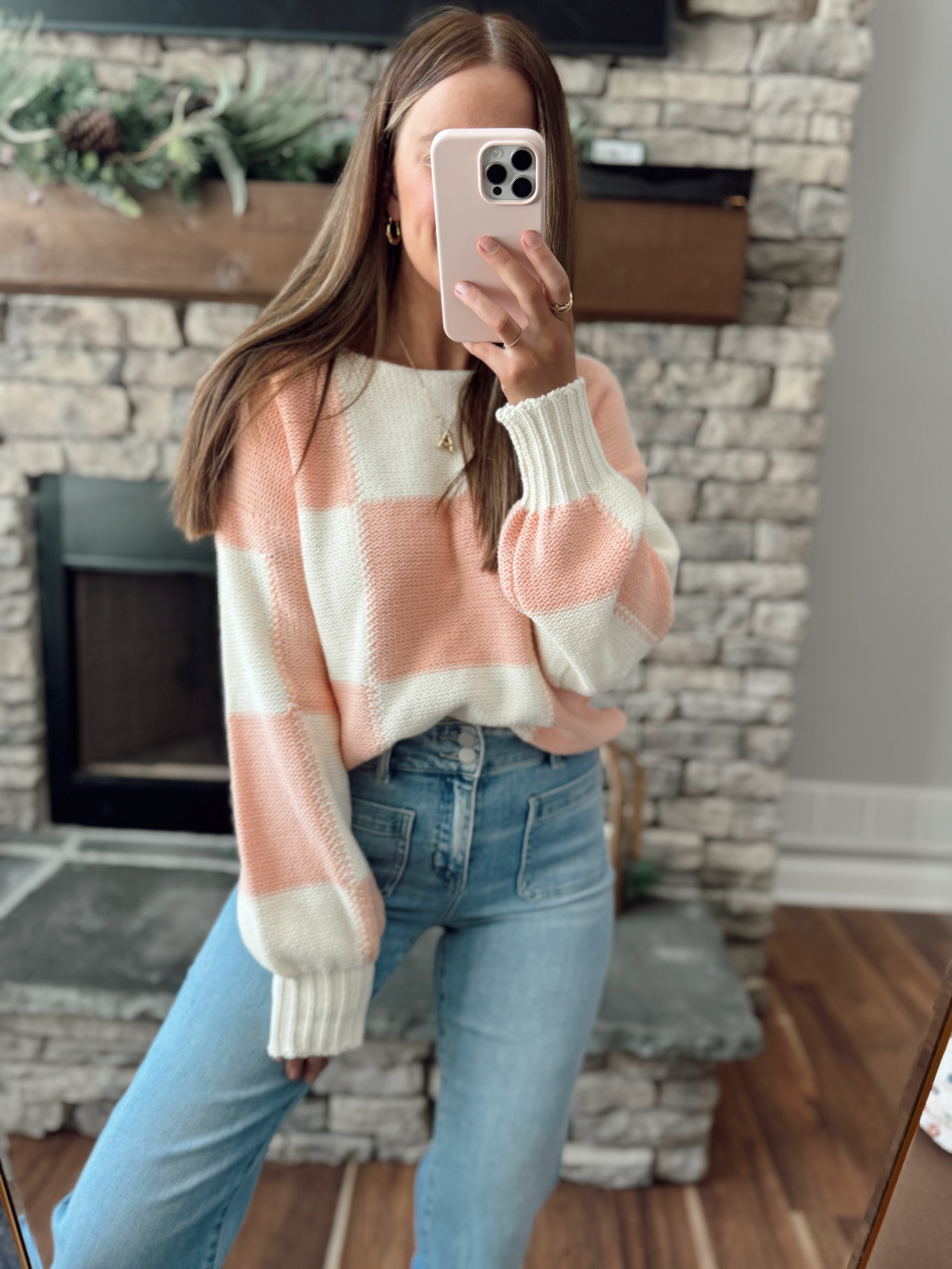 Strawberry Milk Checkered Print Boat Neck Sweater