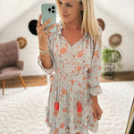 A perfect transition dress with pockets! Not to mention - great length! Chelsea is 5’6 and in the small. You could side down if in between. Picturing it with knee high boots for this fall - yes plz
