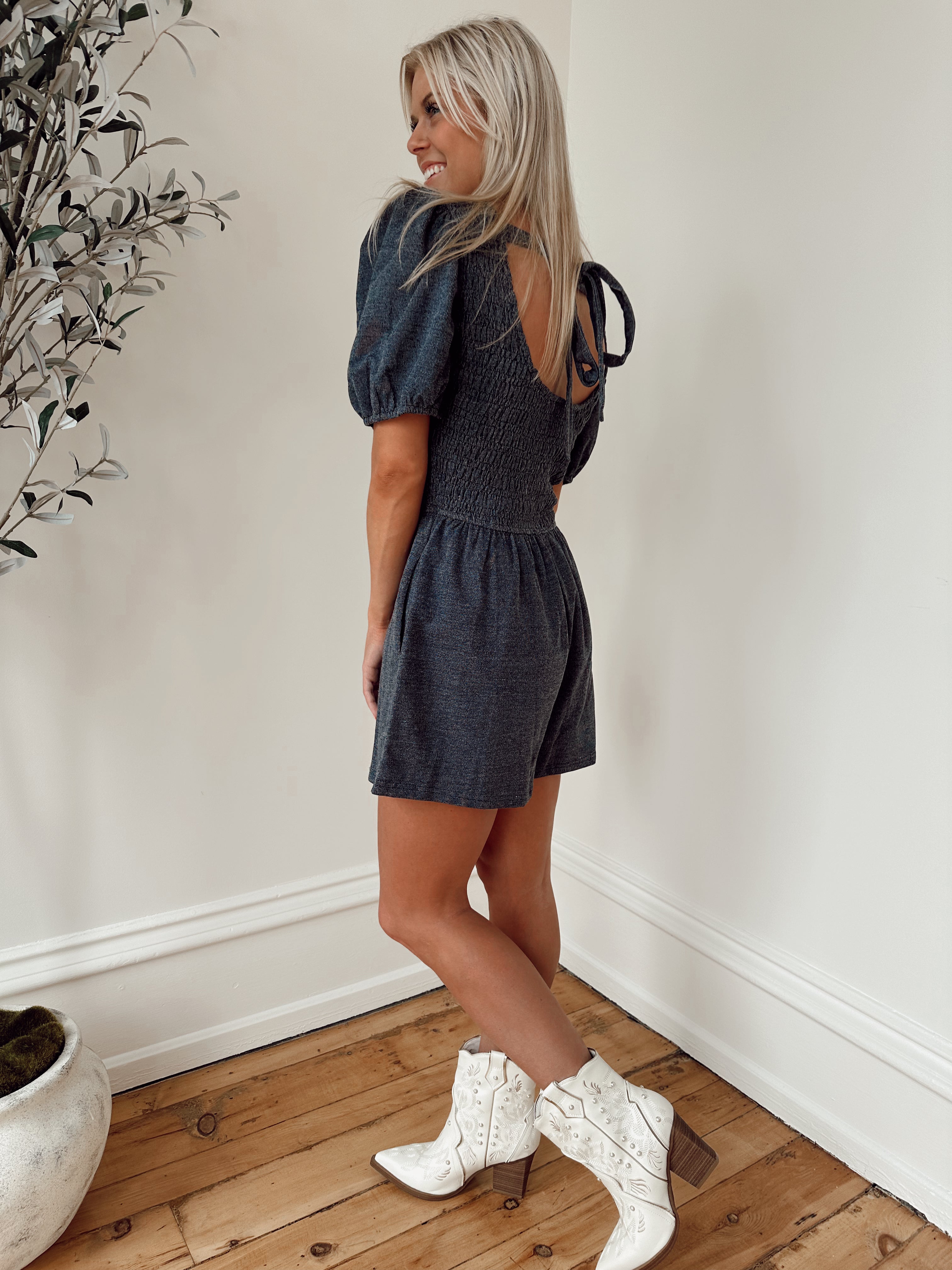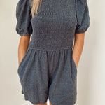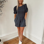 Sunny Attraction Dark Denim Smocked Romper