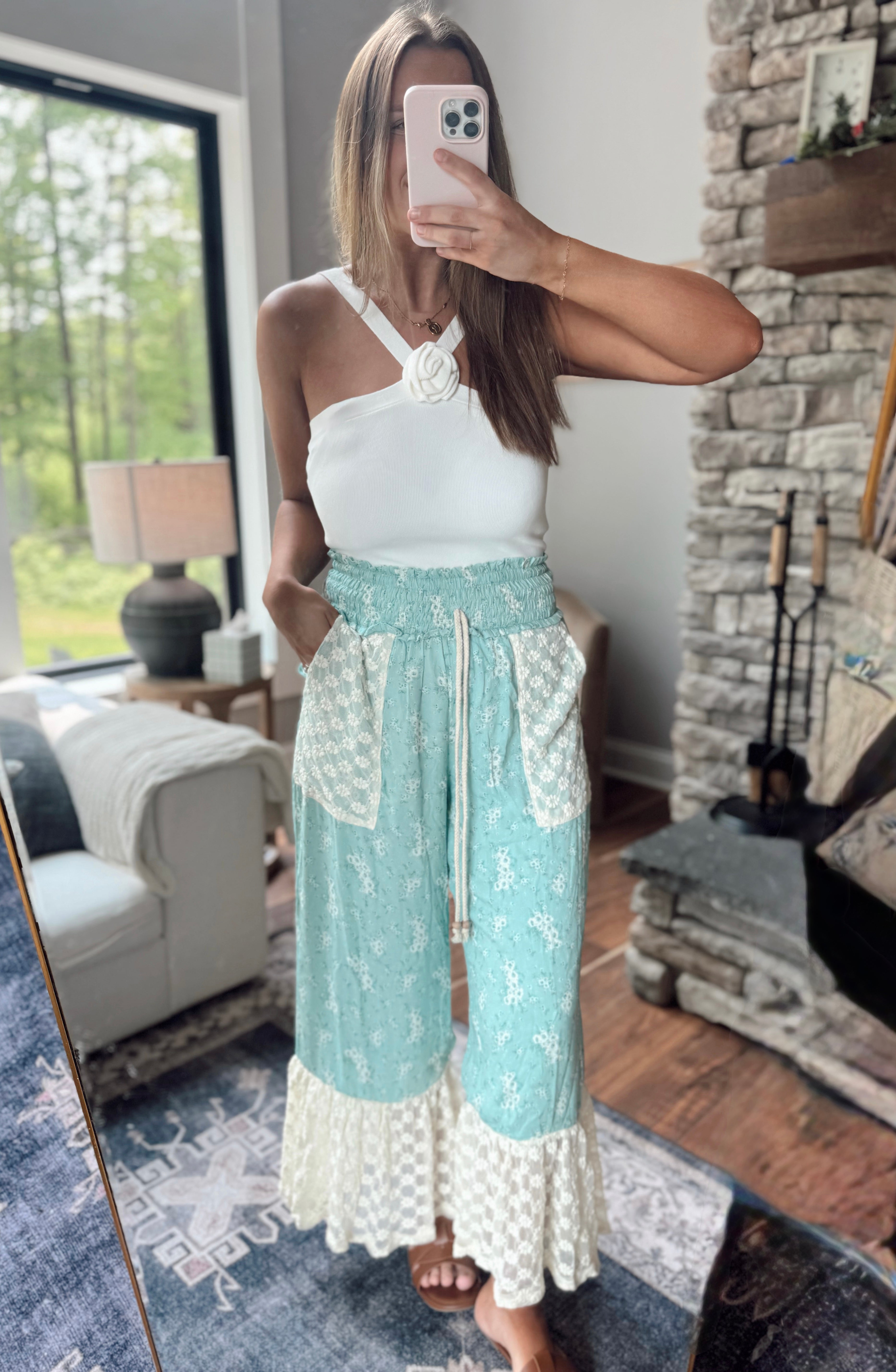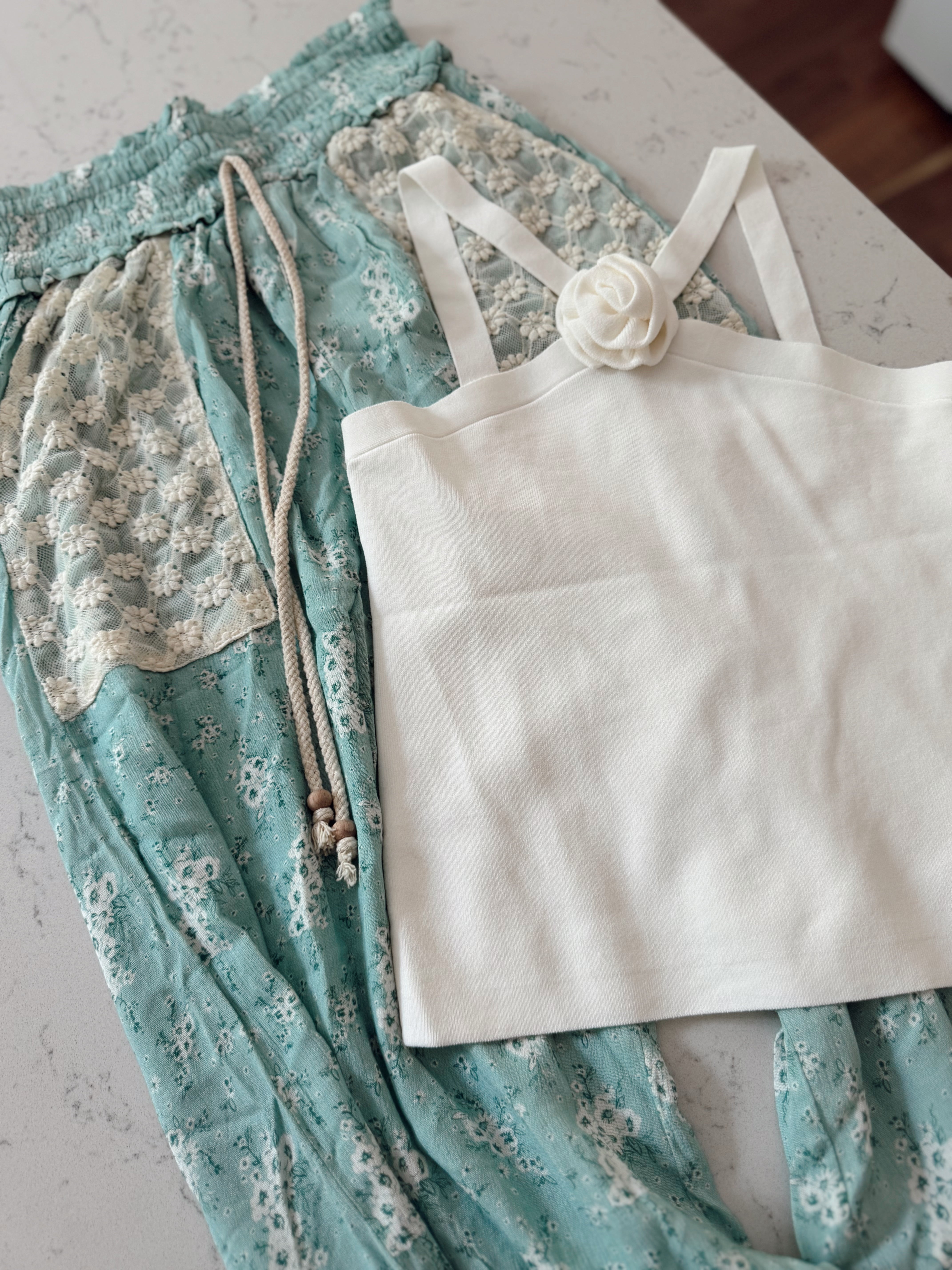 Sweet Fling Cream Flower Detail Halter Neck Knit Tank