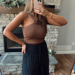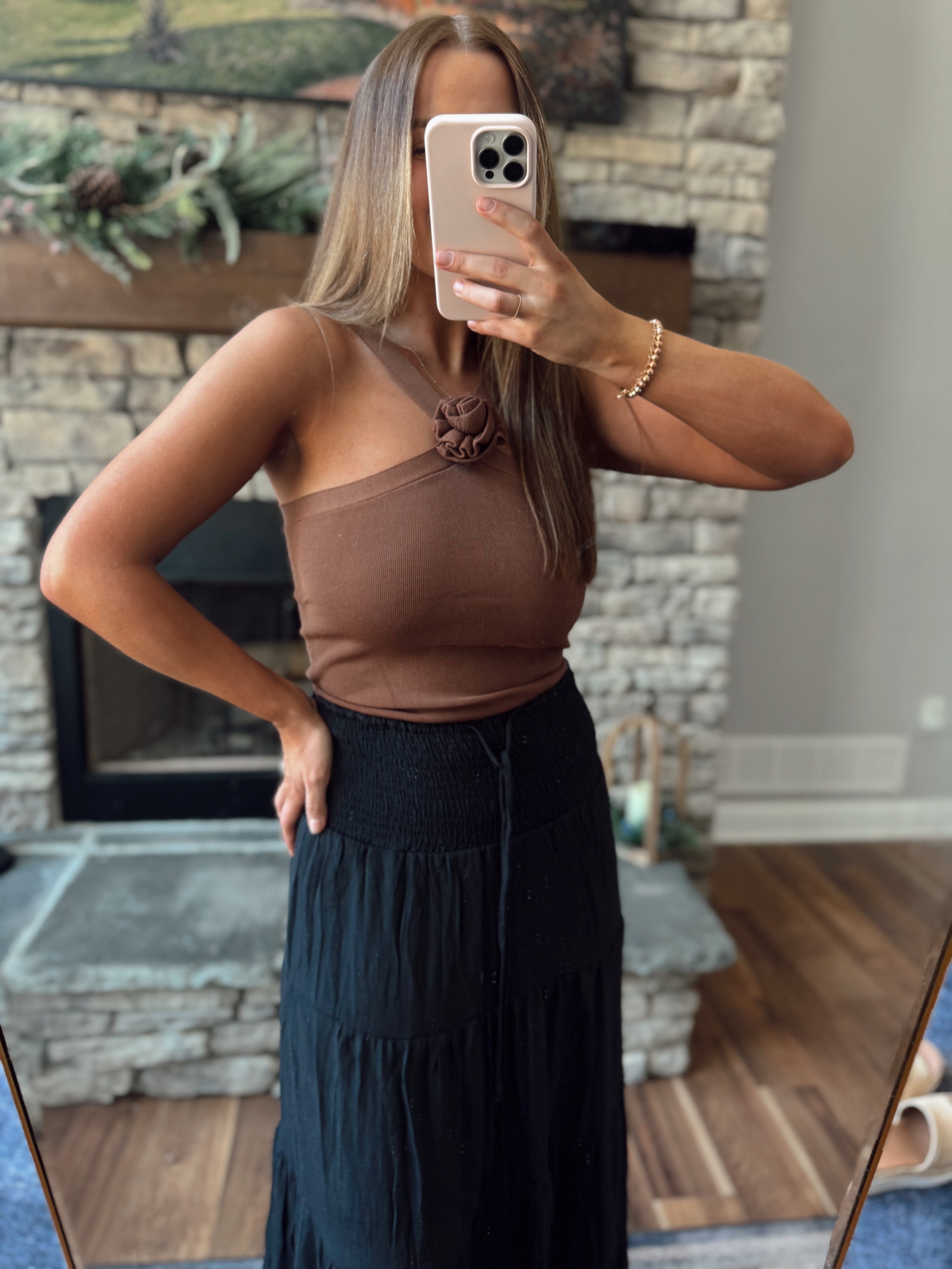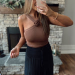 Sweet Fling Mocha Flower Detail Halter Neck Knit Tank