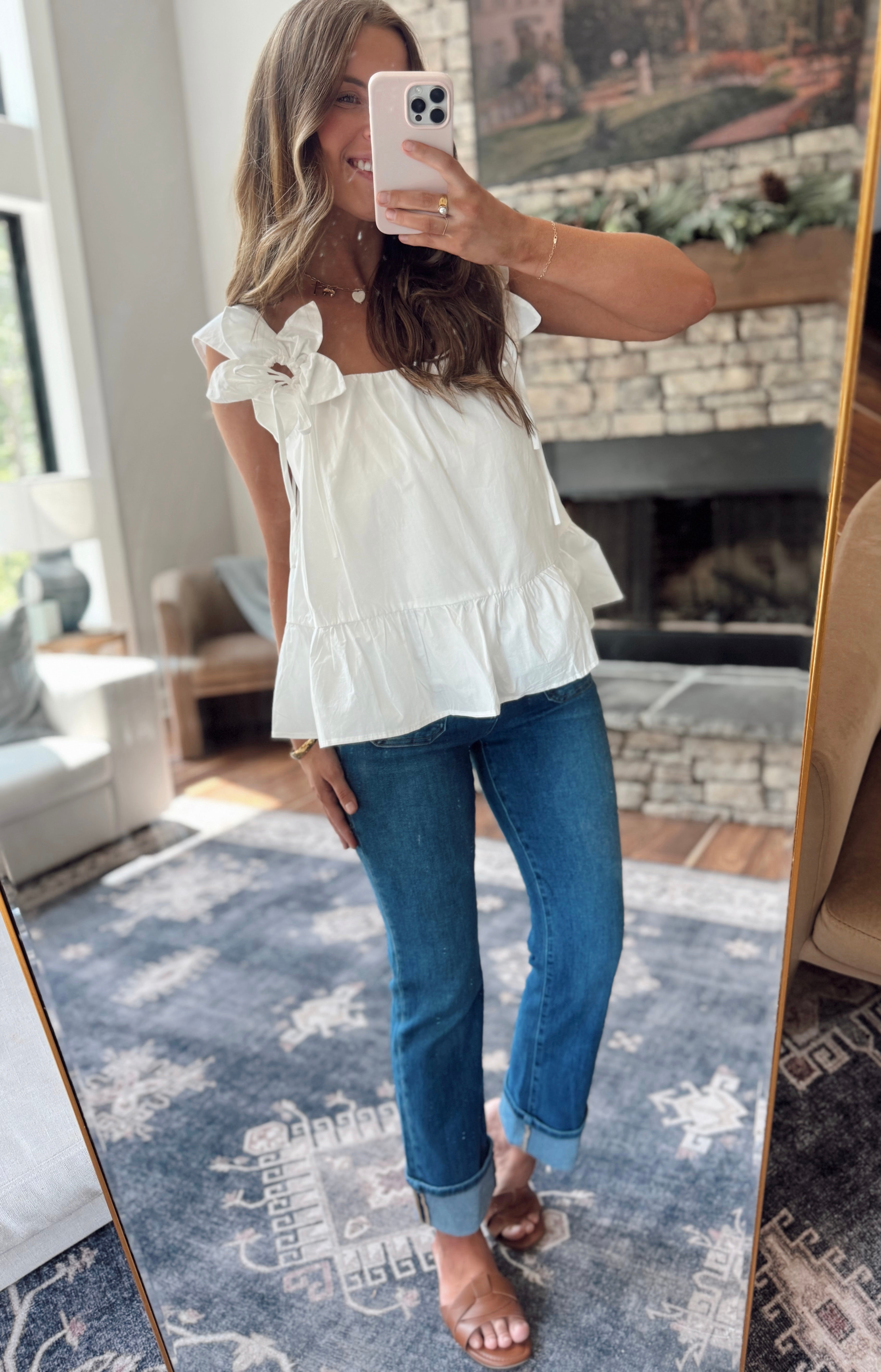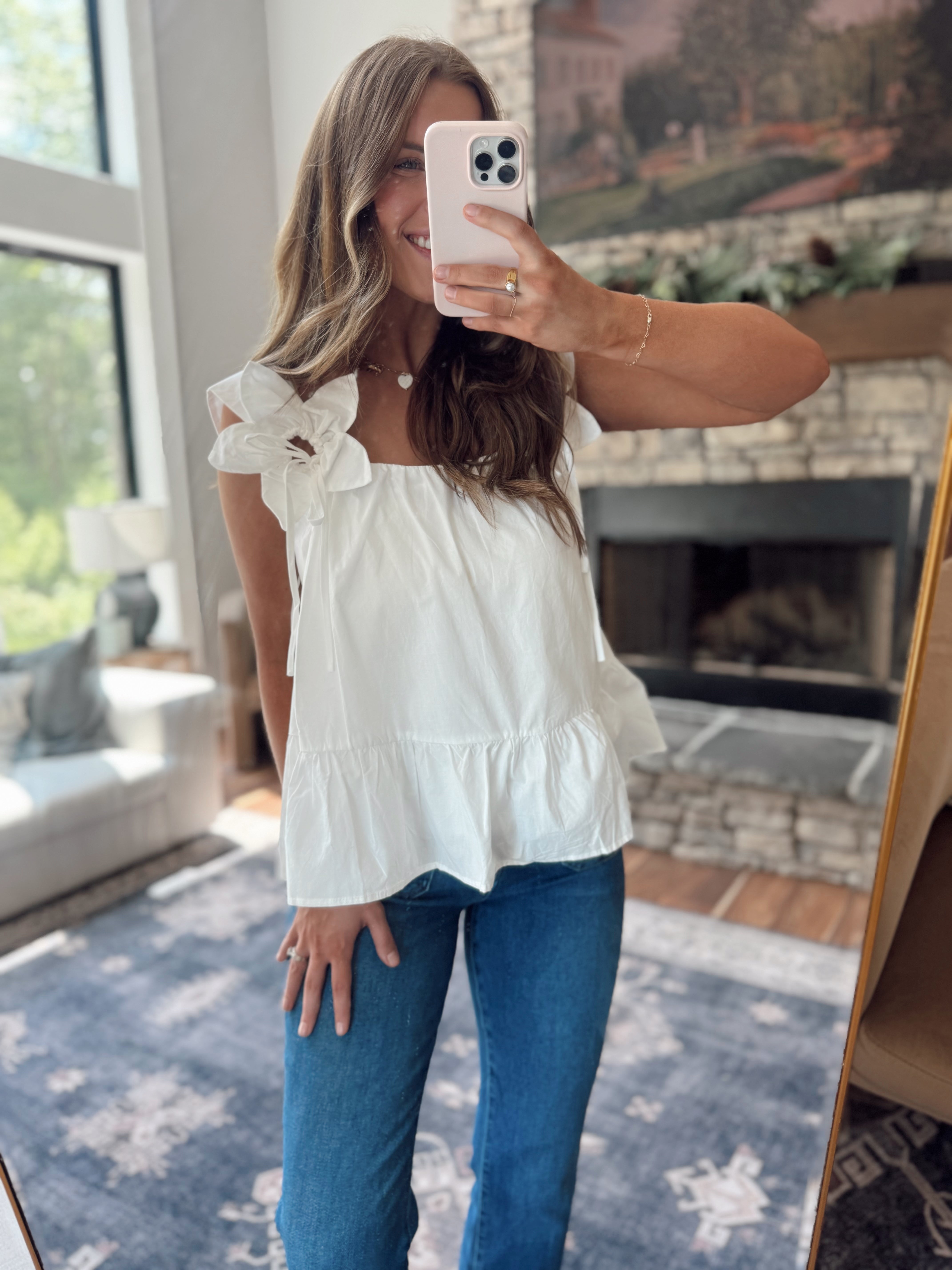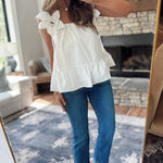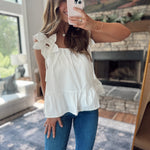 Sweet & Pure Off White 3D Flower Peplum Tank