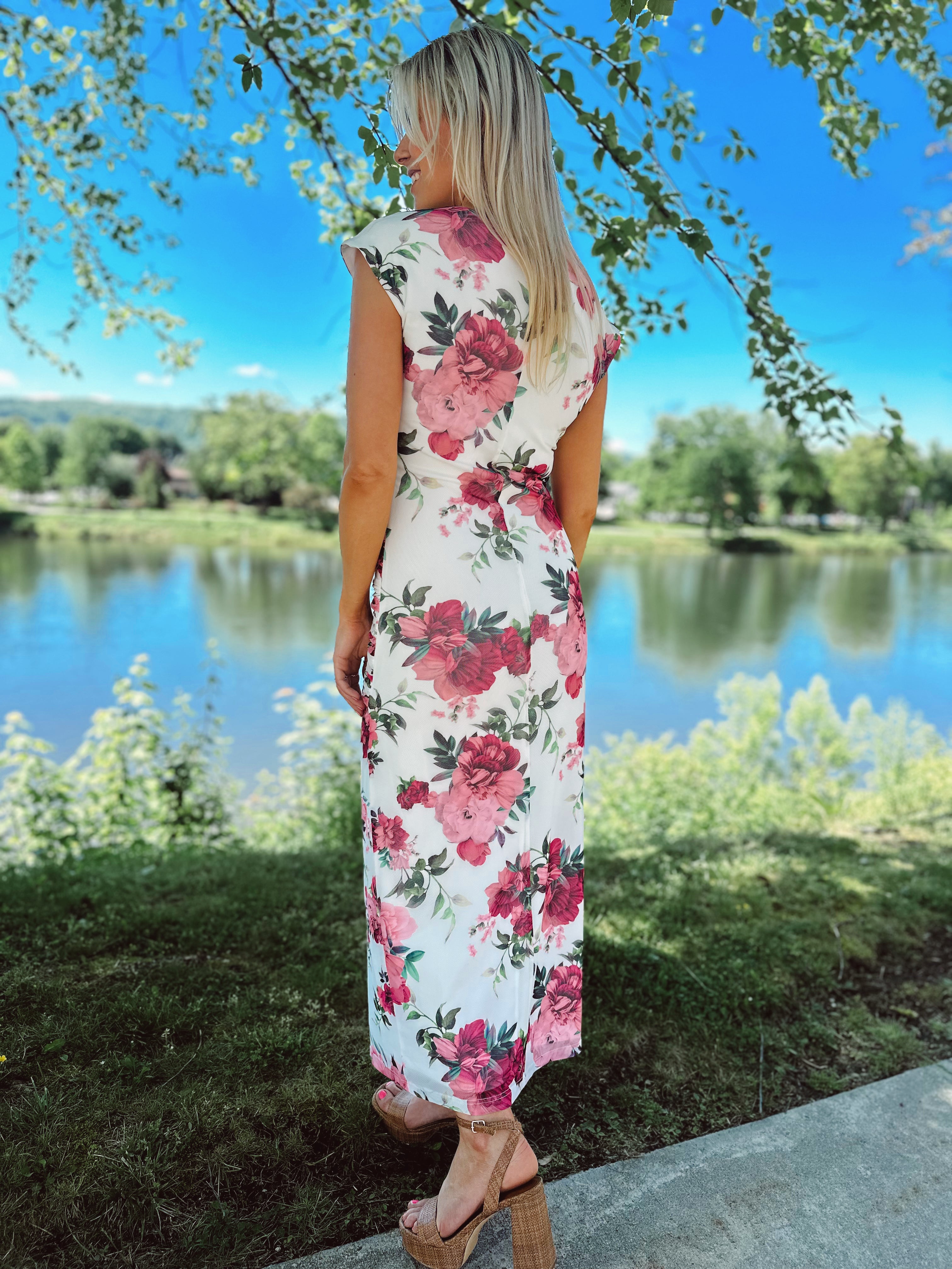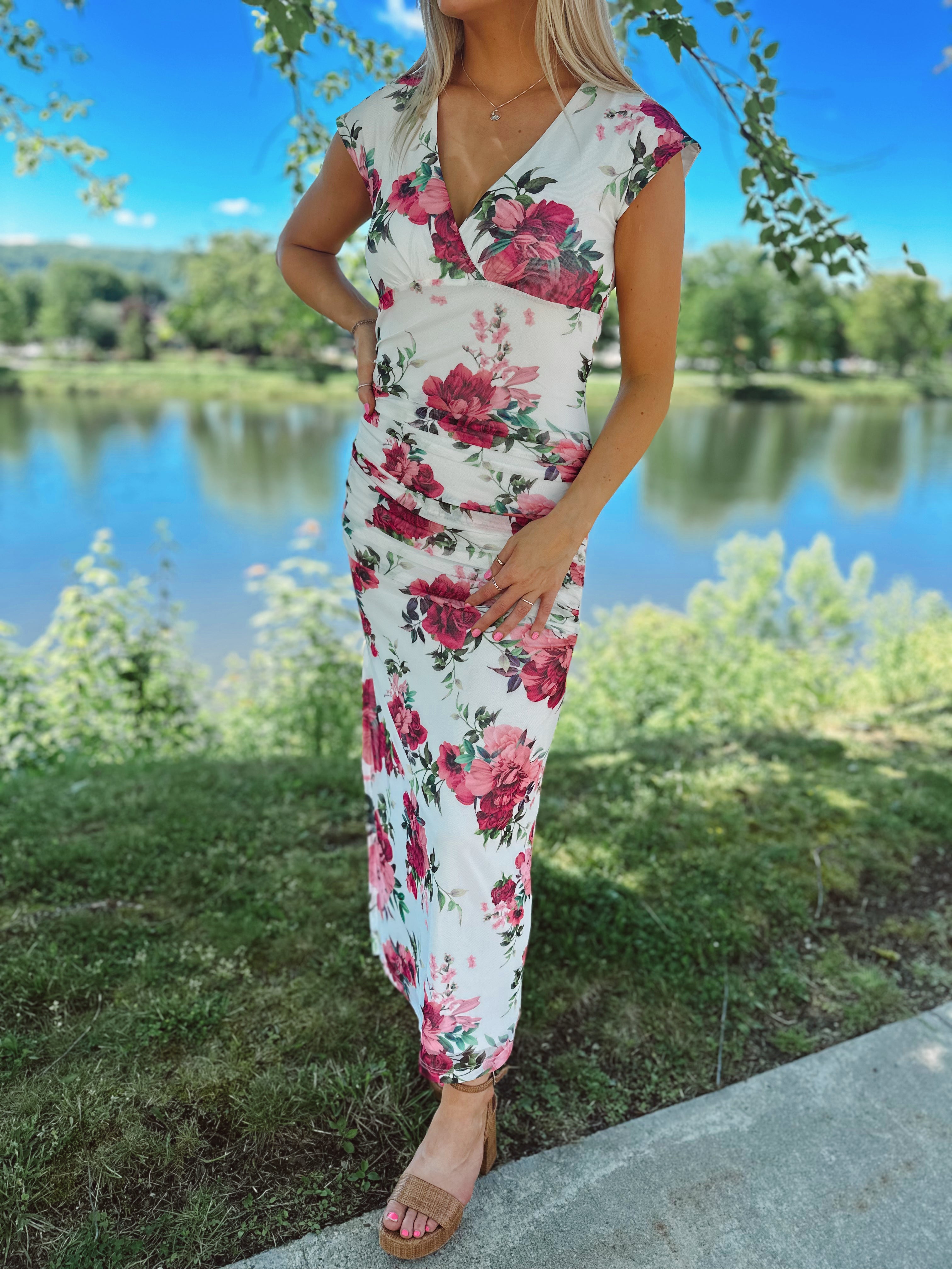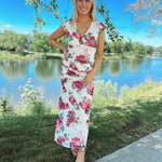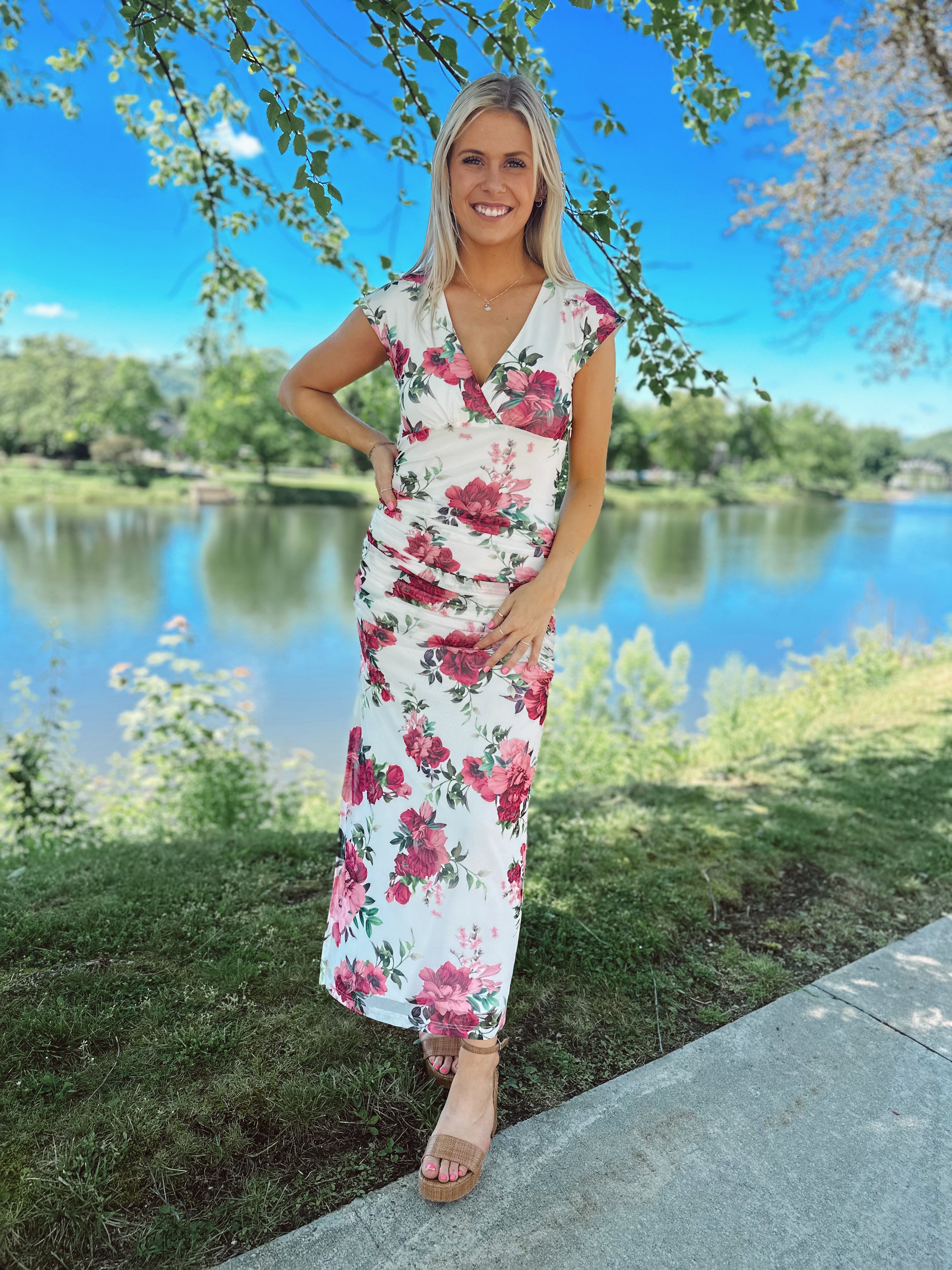 Sweet & Stylish Pink Peony Ruched Maxi Dress