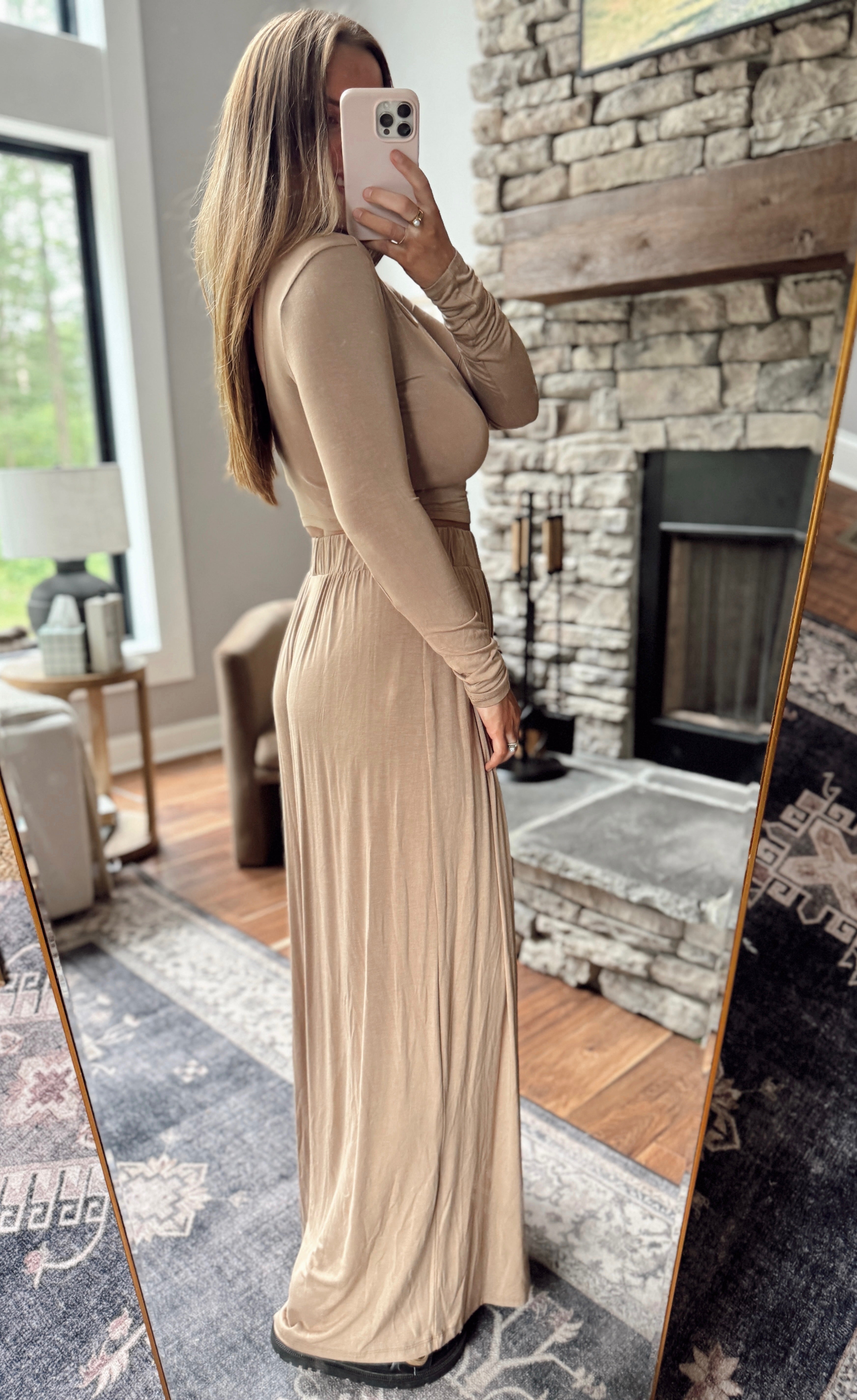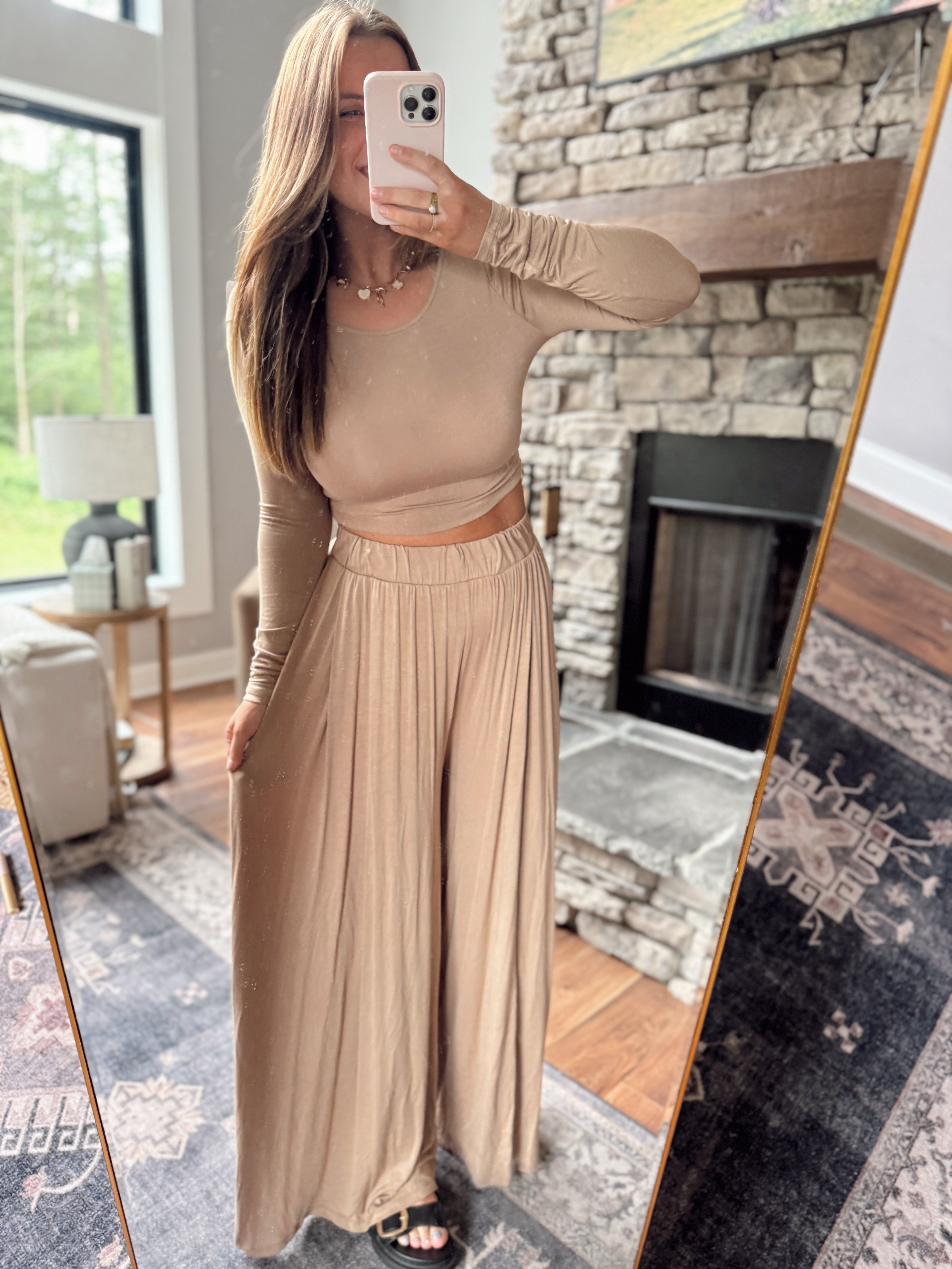 Taupe Go With The Flow Long Sleeve Top and Pant Set