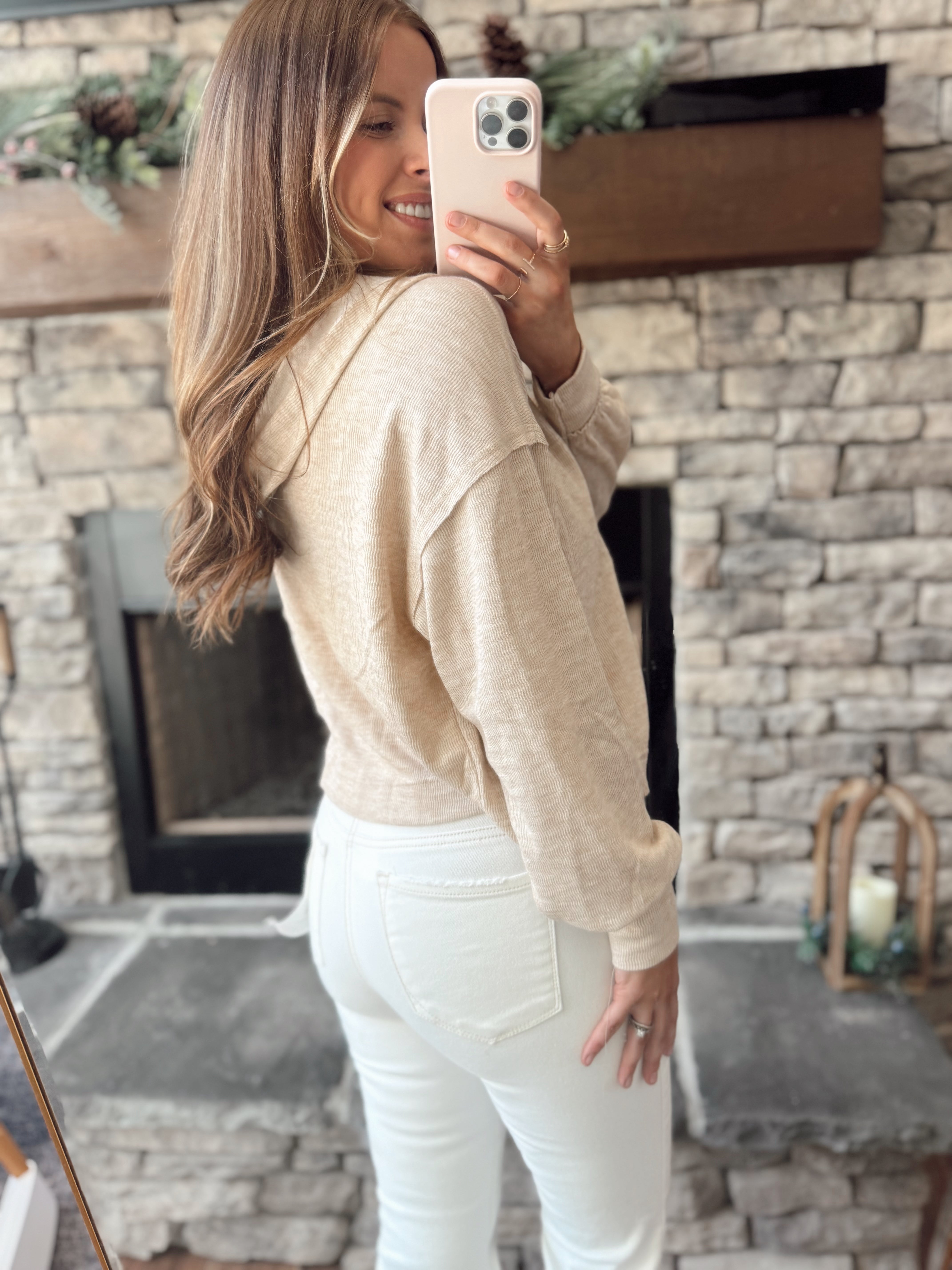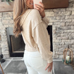Taupe Hooded Split Neck Long Sleeve