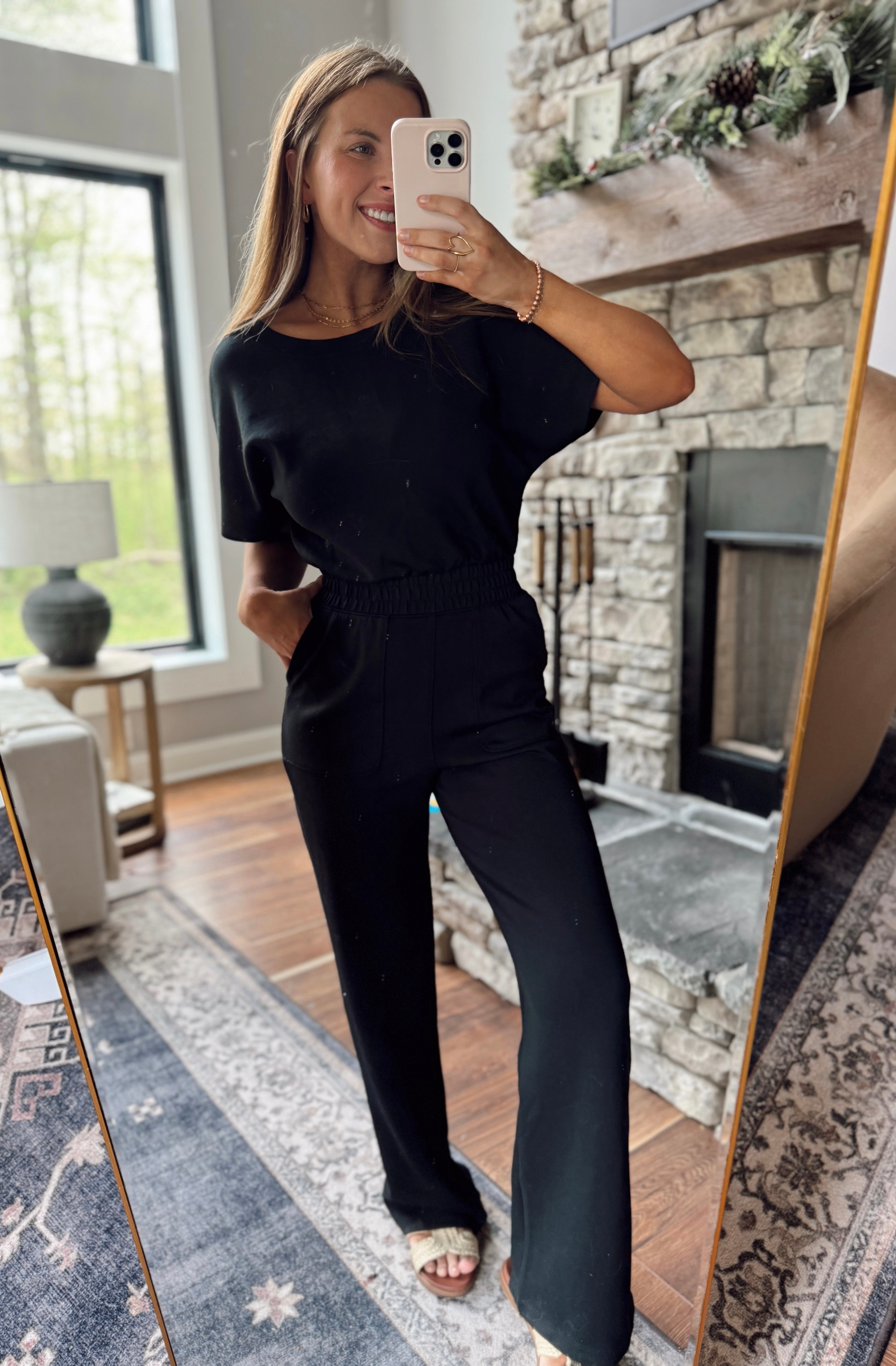 The best scuba material! This jumpsuit is so good on the skin. A relaxed / true fit. Very soft. I’m 5’7 and in the small.