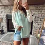 Tiffany Blue/Cream Hooded Pullover with Front Pouch