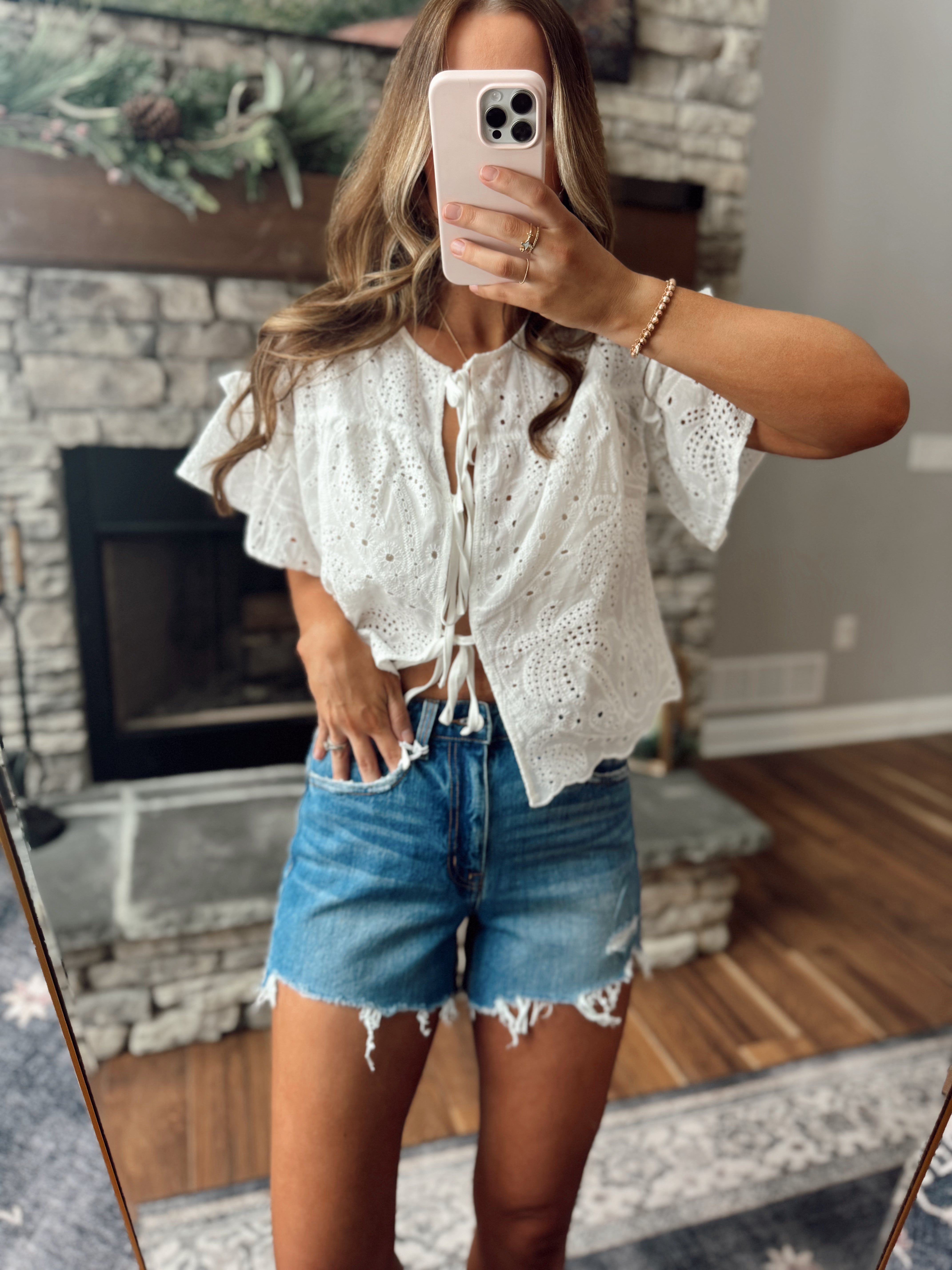 Vervet Enchanted HR Distressed Hem A-Line Shorts