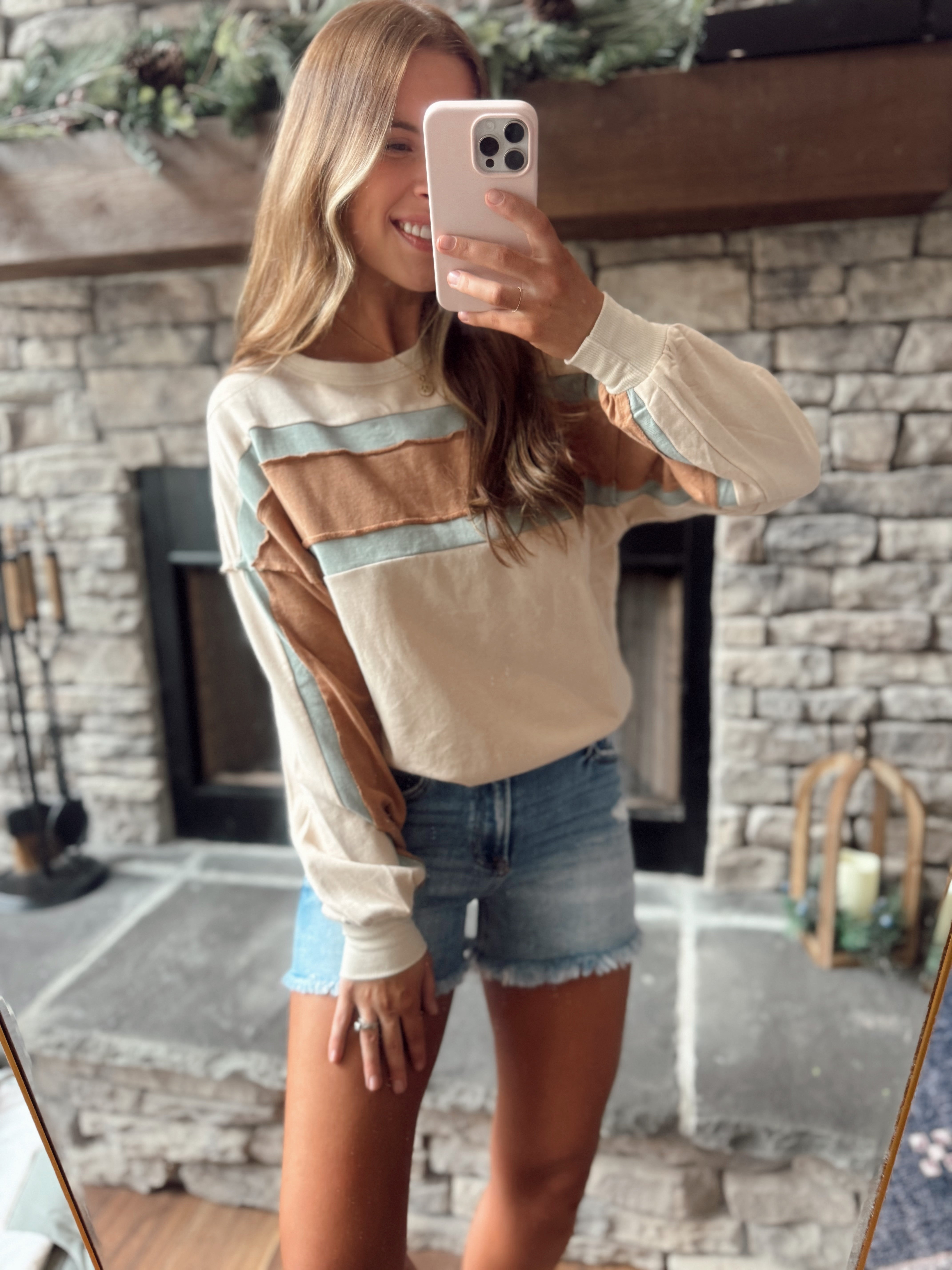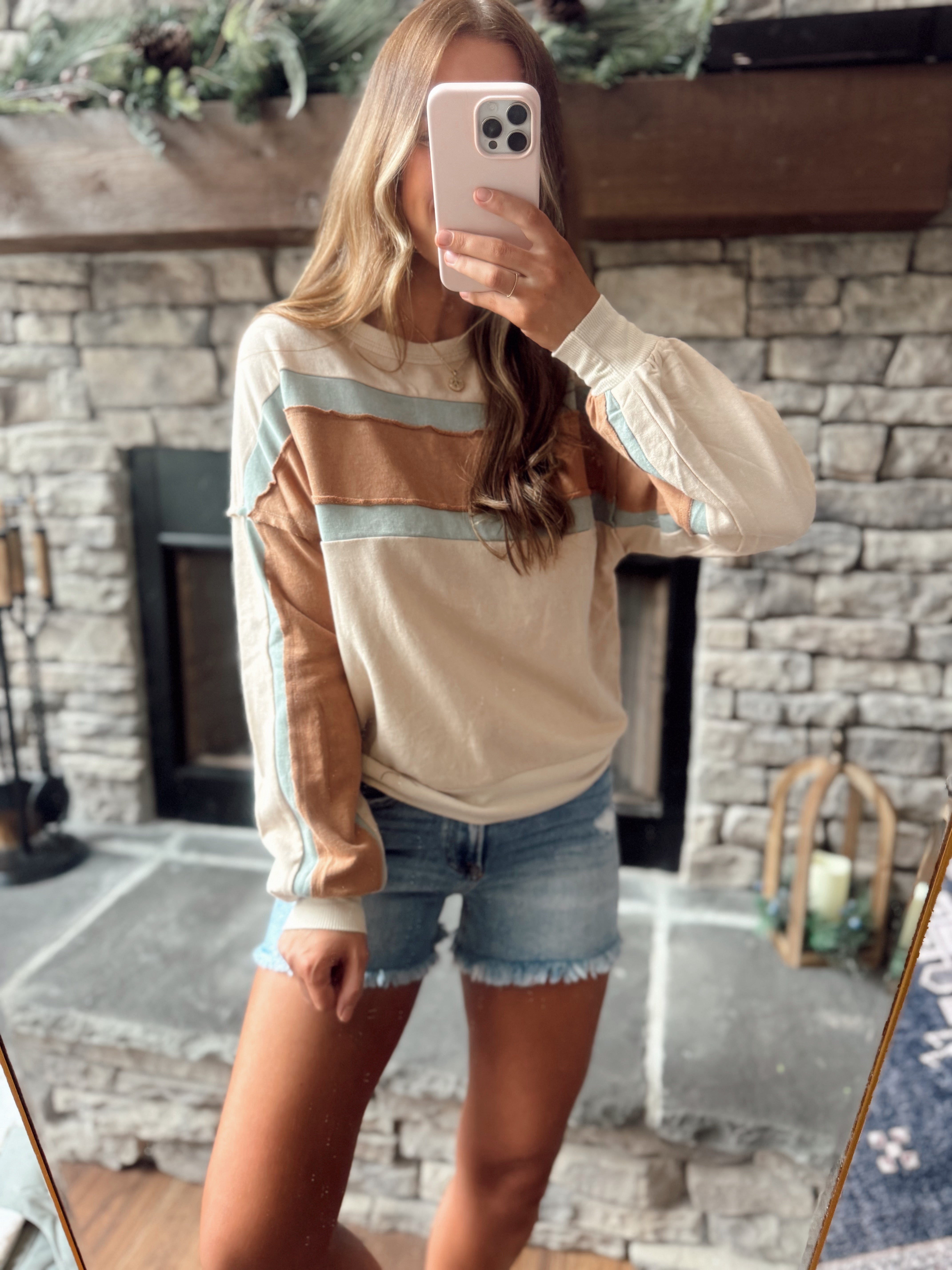 Warmest Wish Almond Mineral Colorblock Crew Long Sleeve