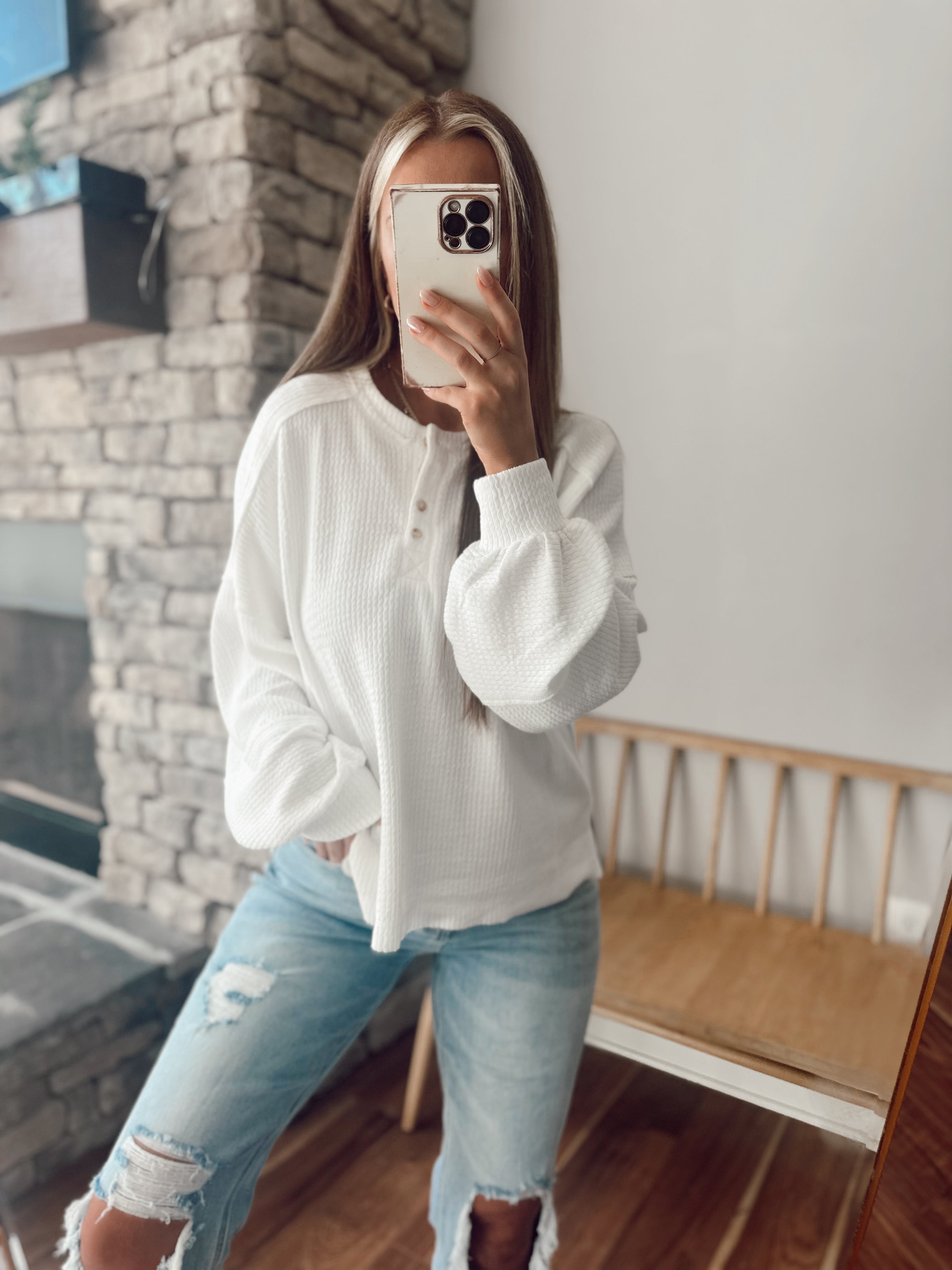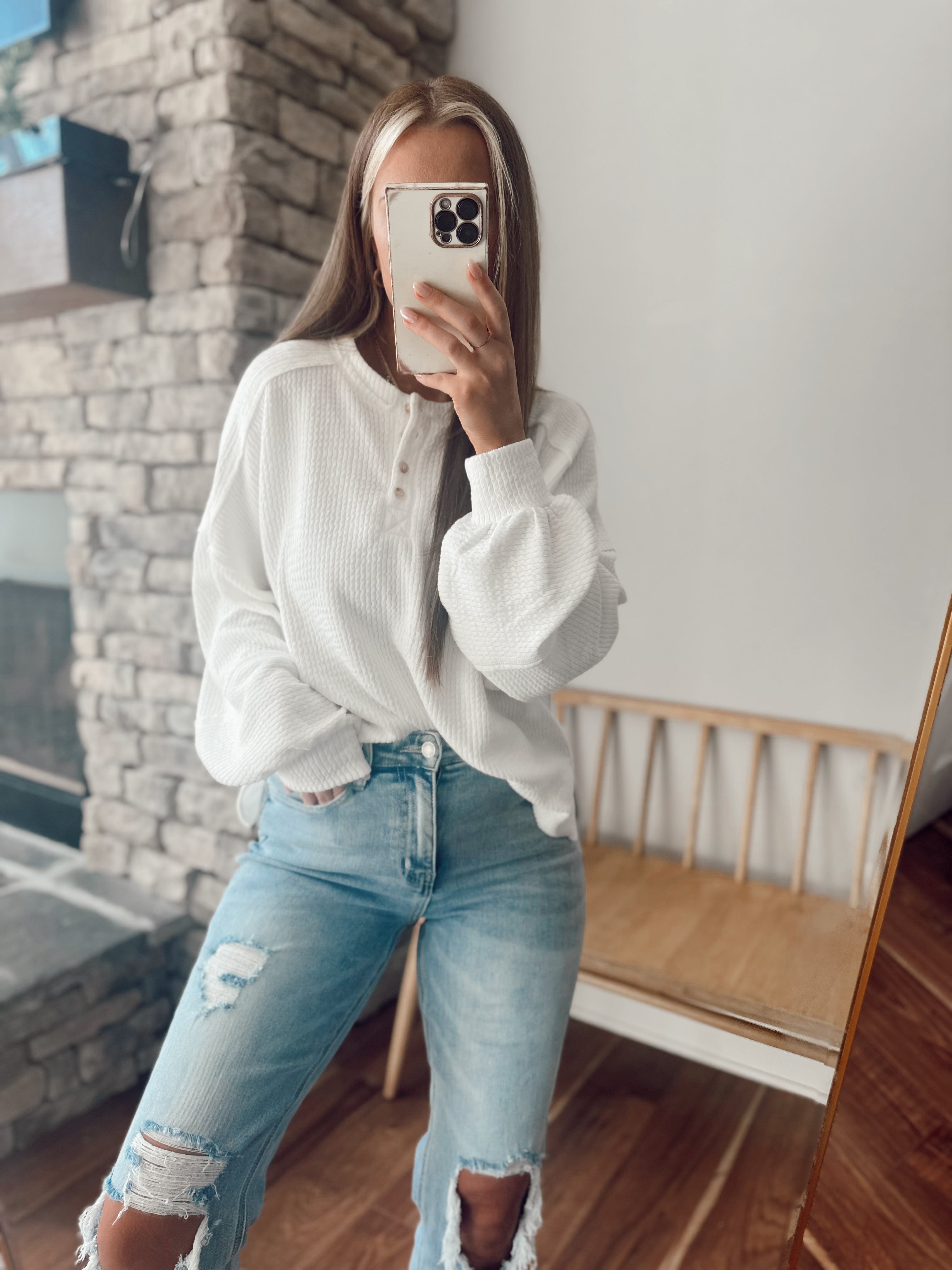 Wave Hello Off White Oversized Henley