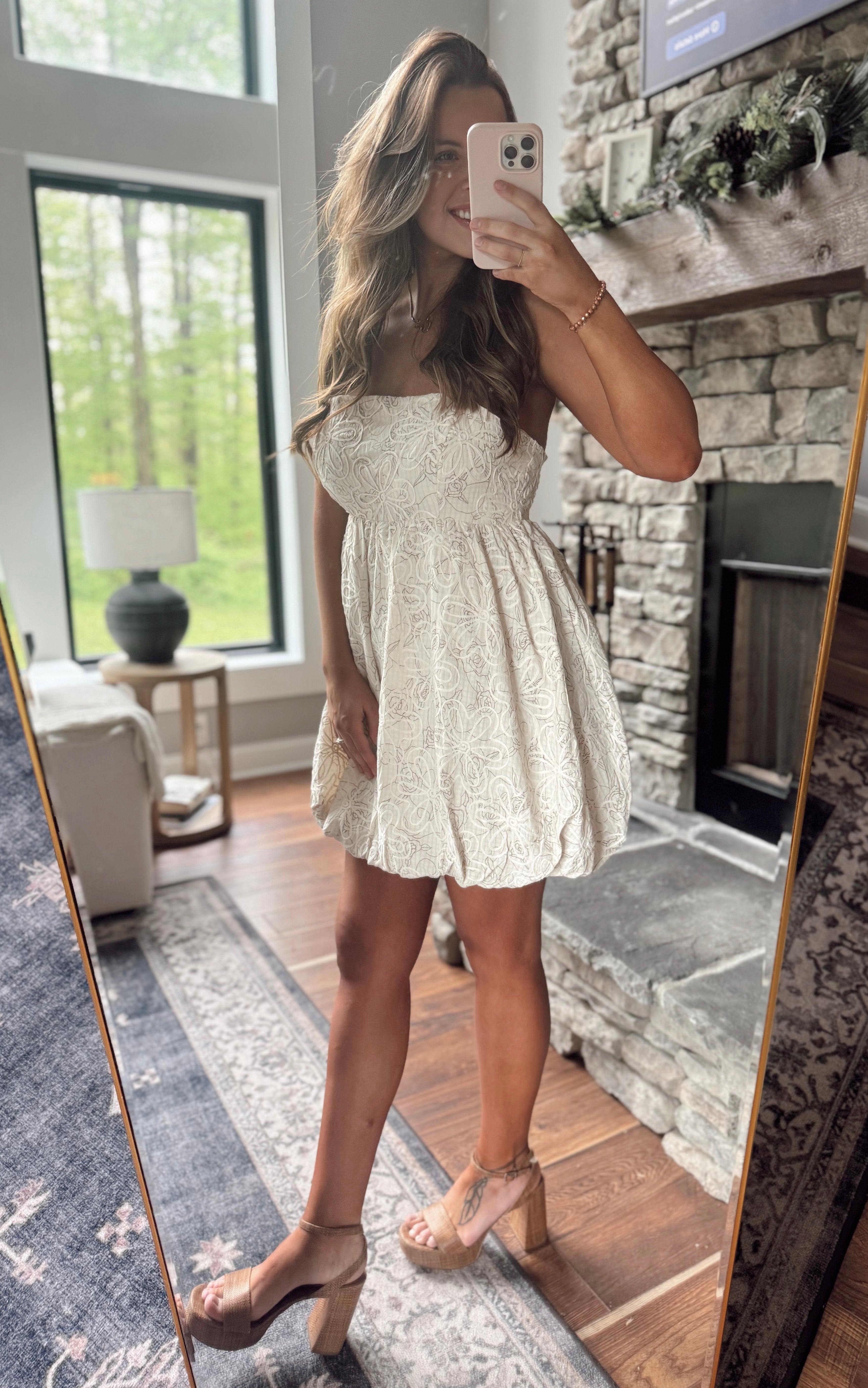 Whimsical Bloom Floral Eyelet Babydoll Mini