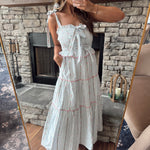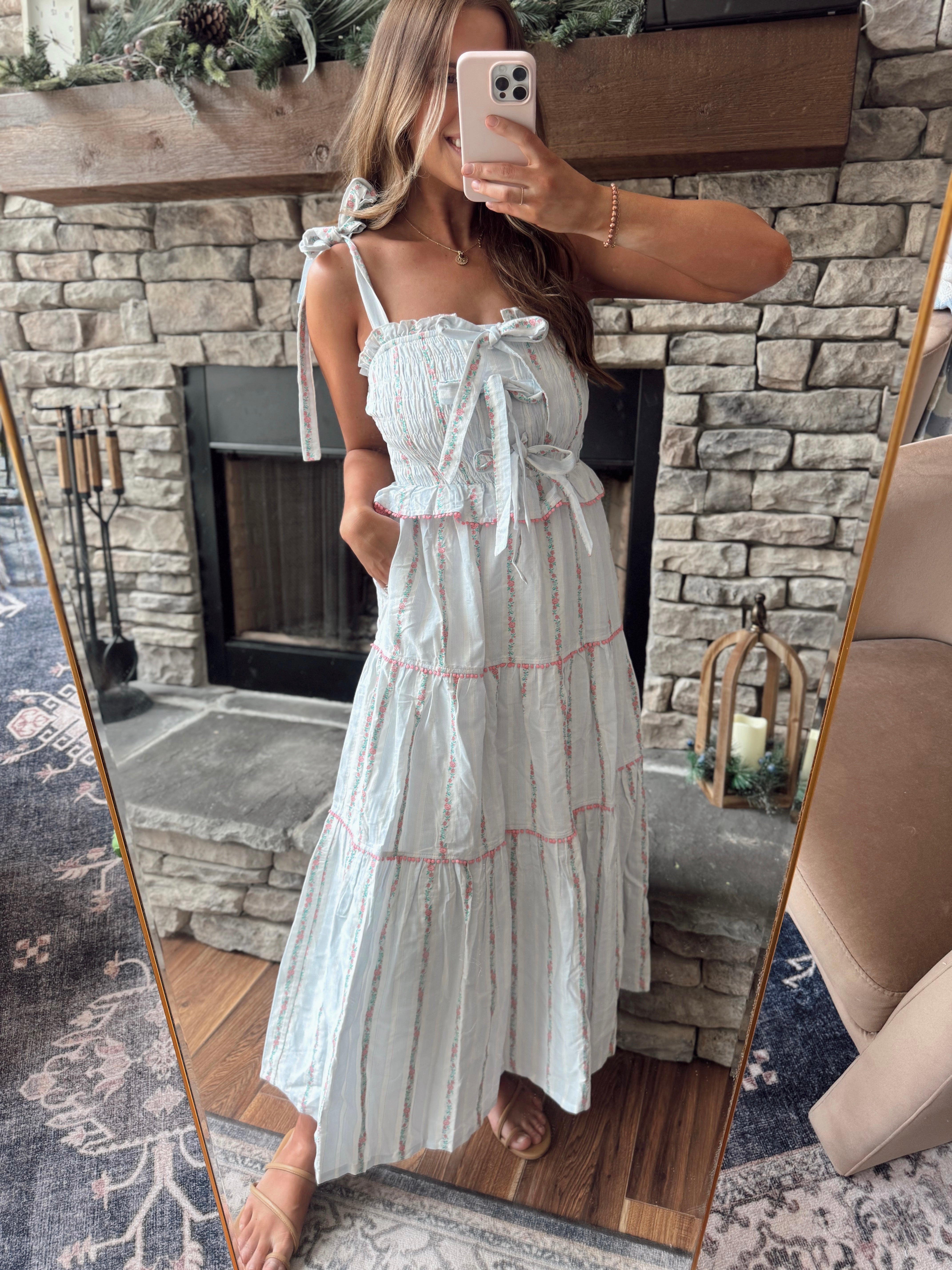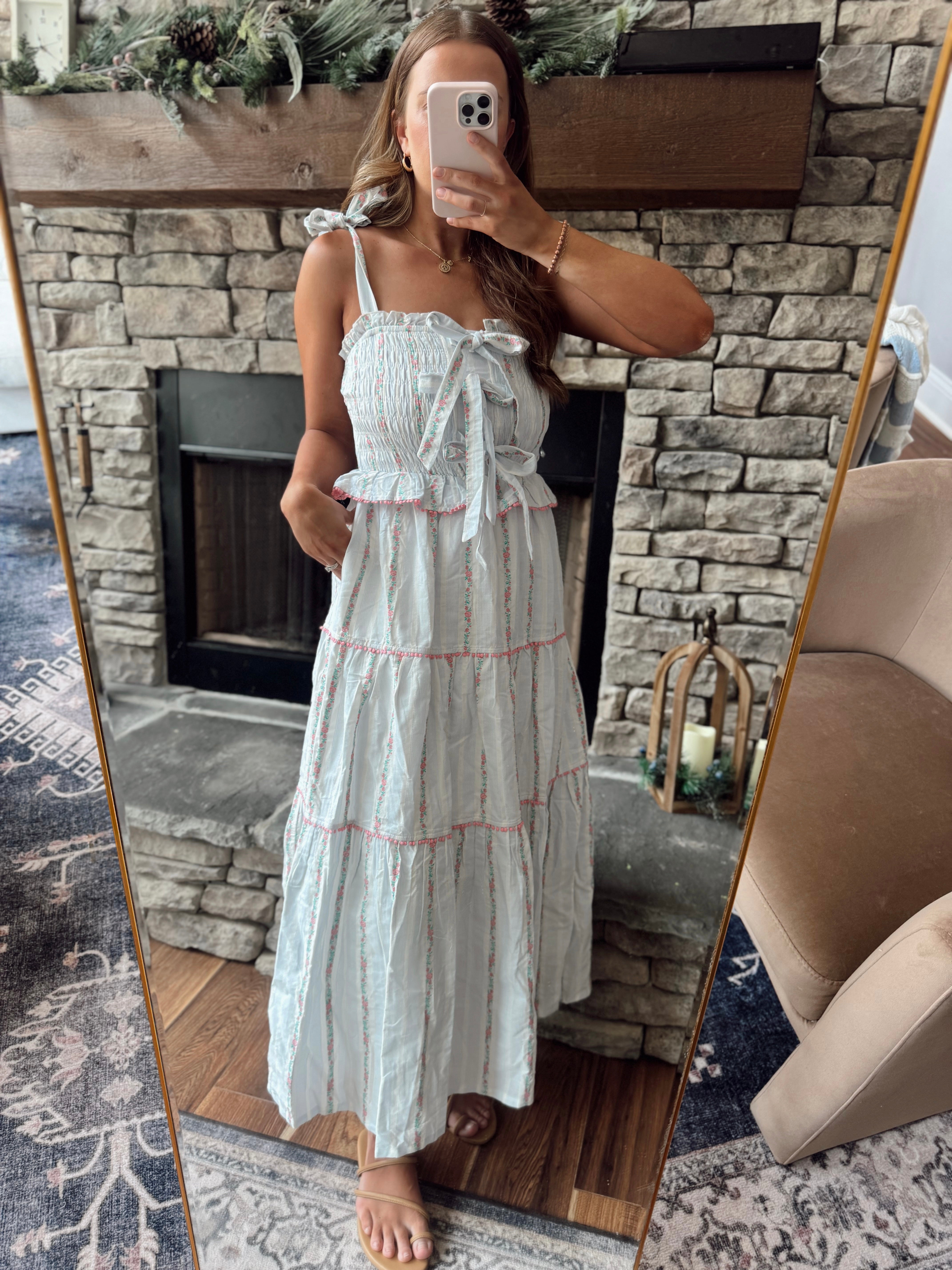 Whispering Meadows Pink Flower Embroidered Tie Front Maxi