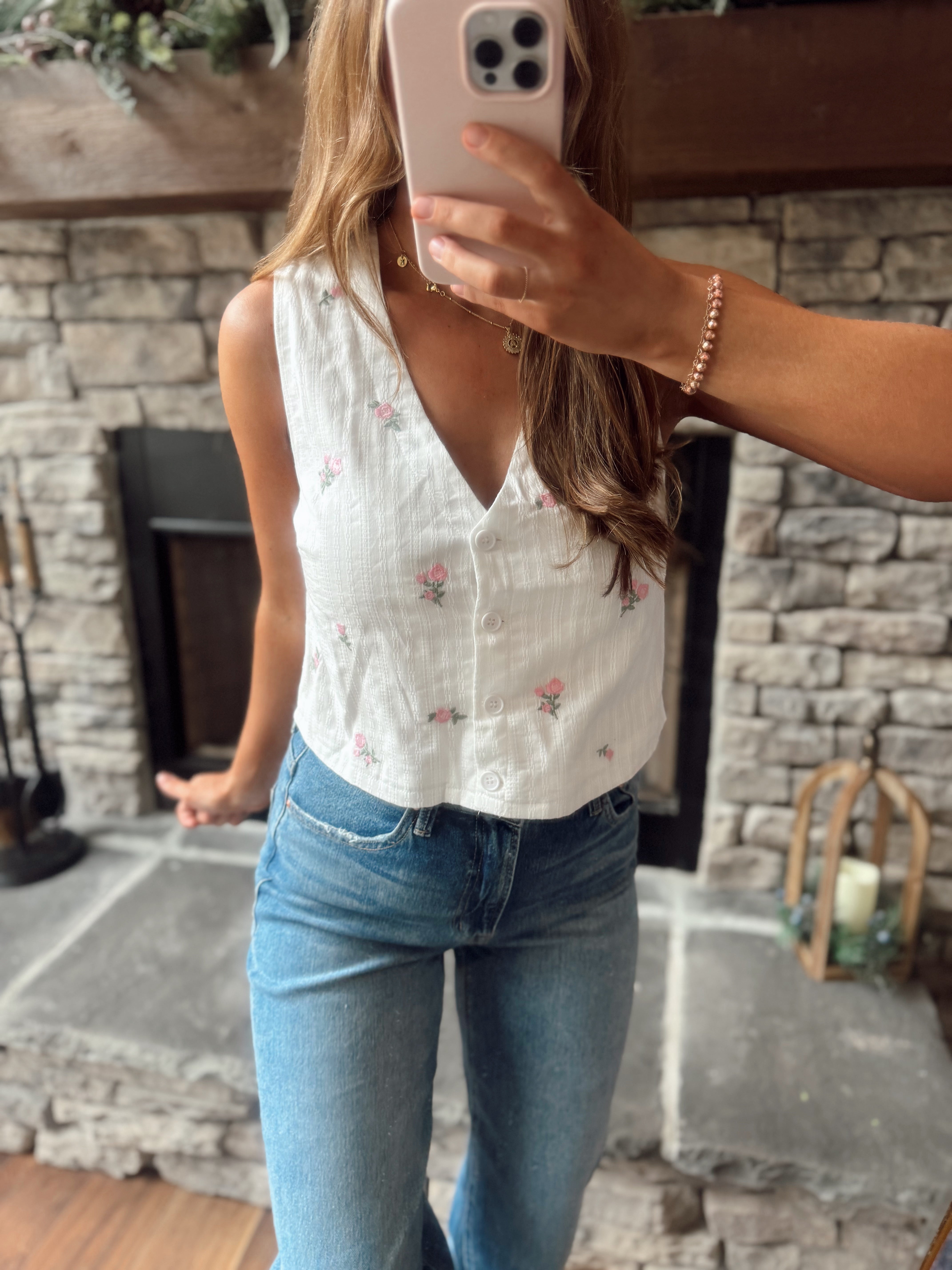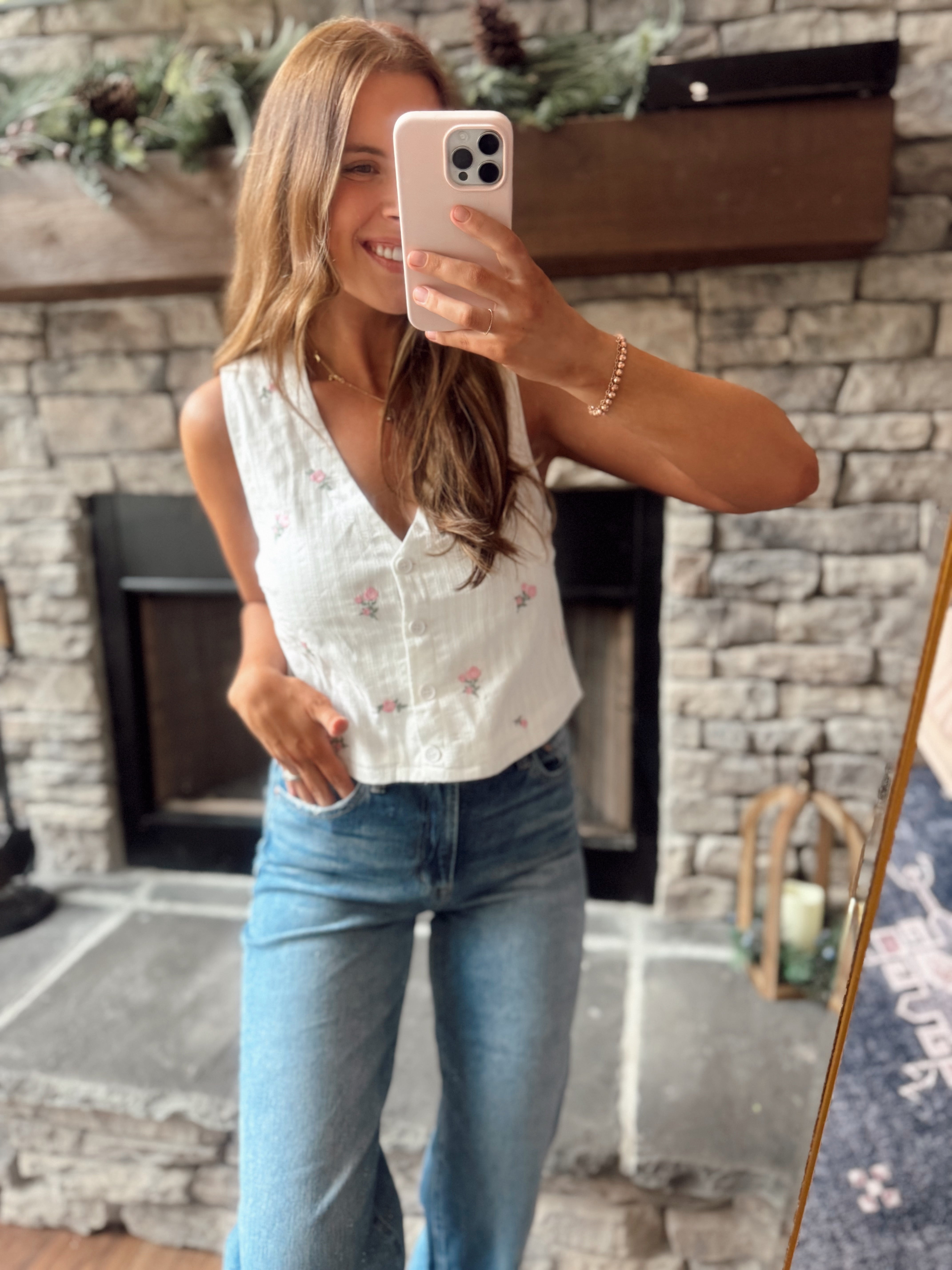 Dainty florals! Working buttons. Relaxed fit. So cute