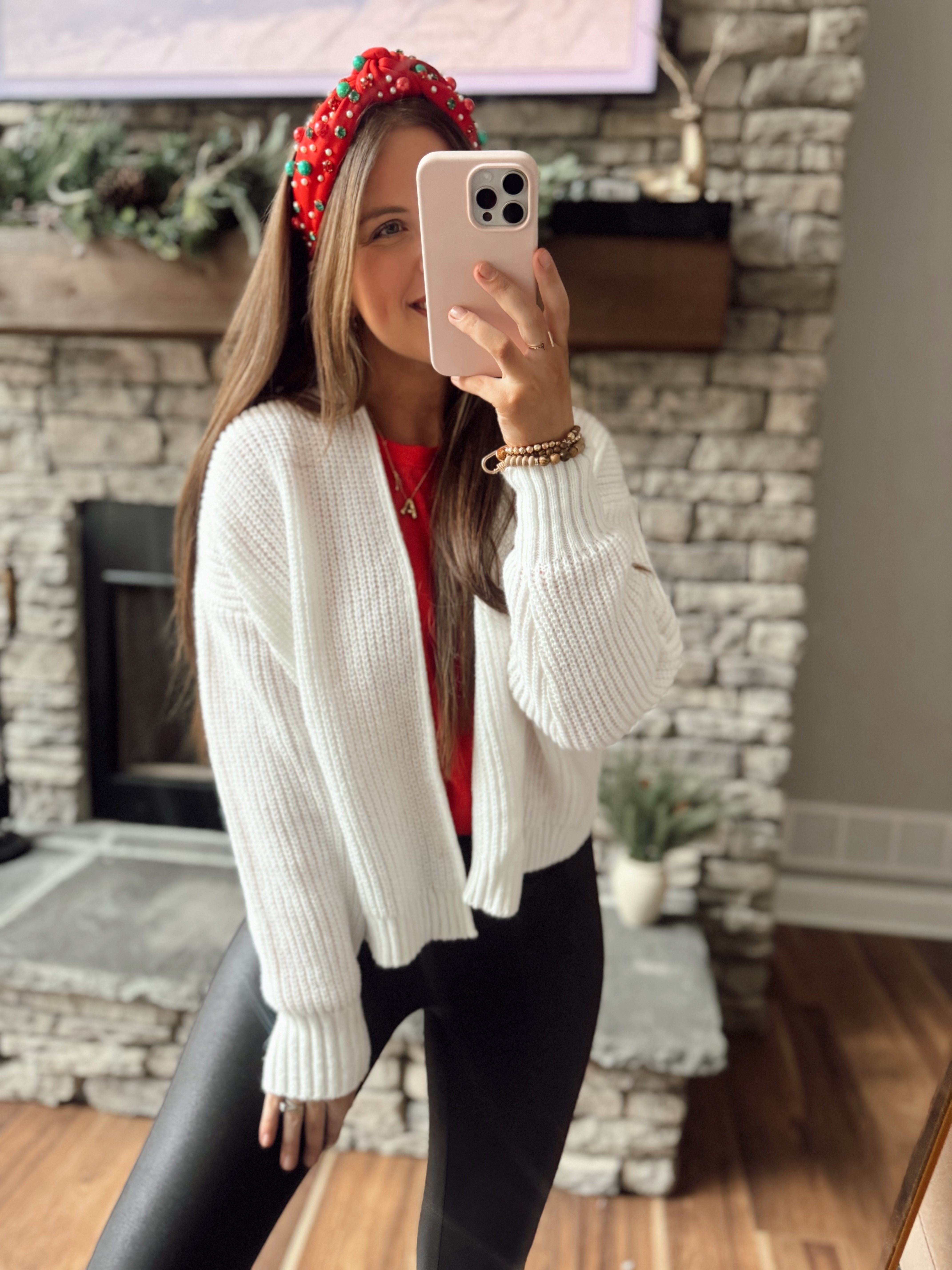 Winnie White Open Front Drop Shoulder Knit Cardi