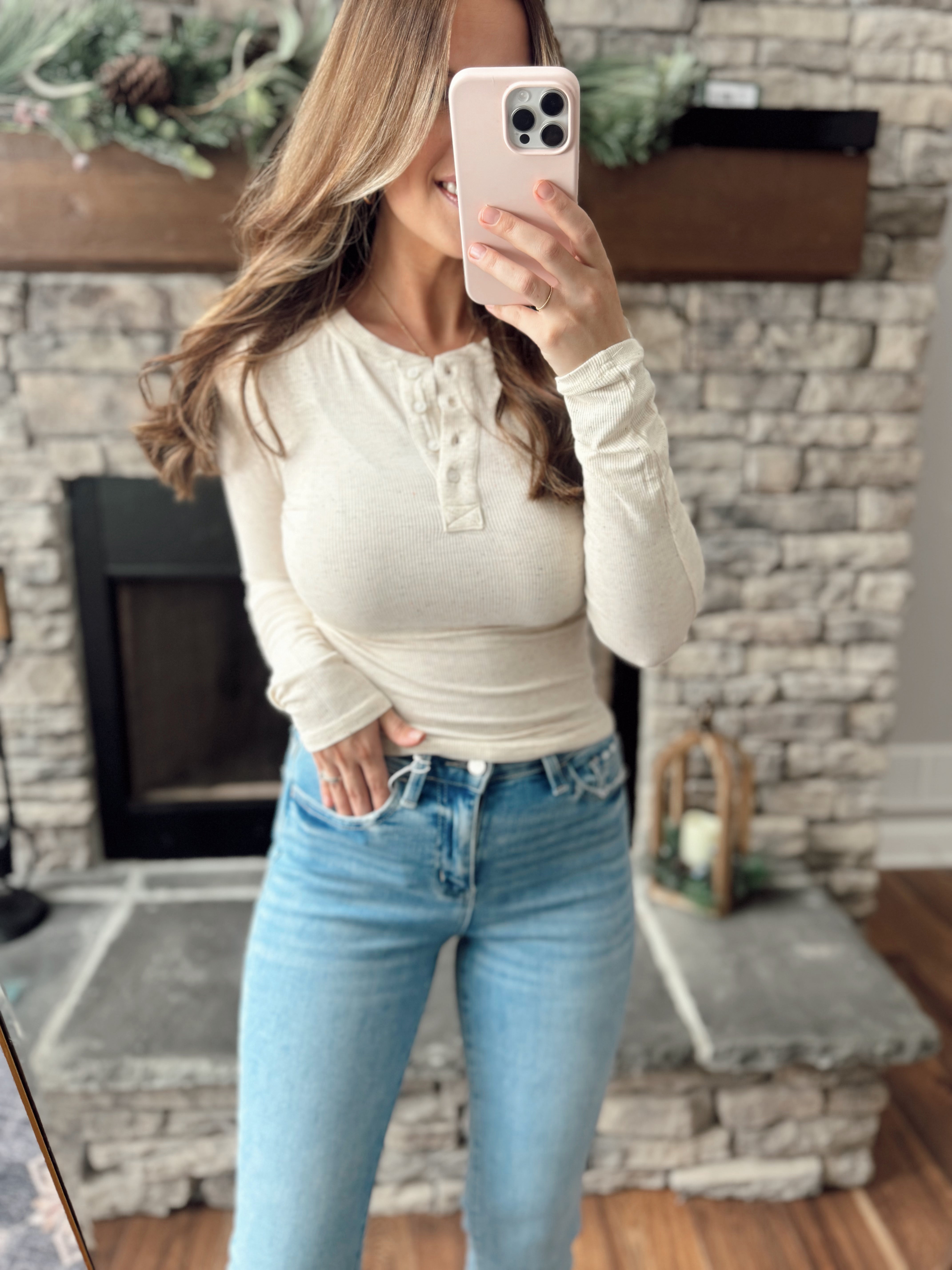 So soft and lightweight. Ribbed material. True to size but stretchy.