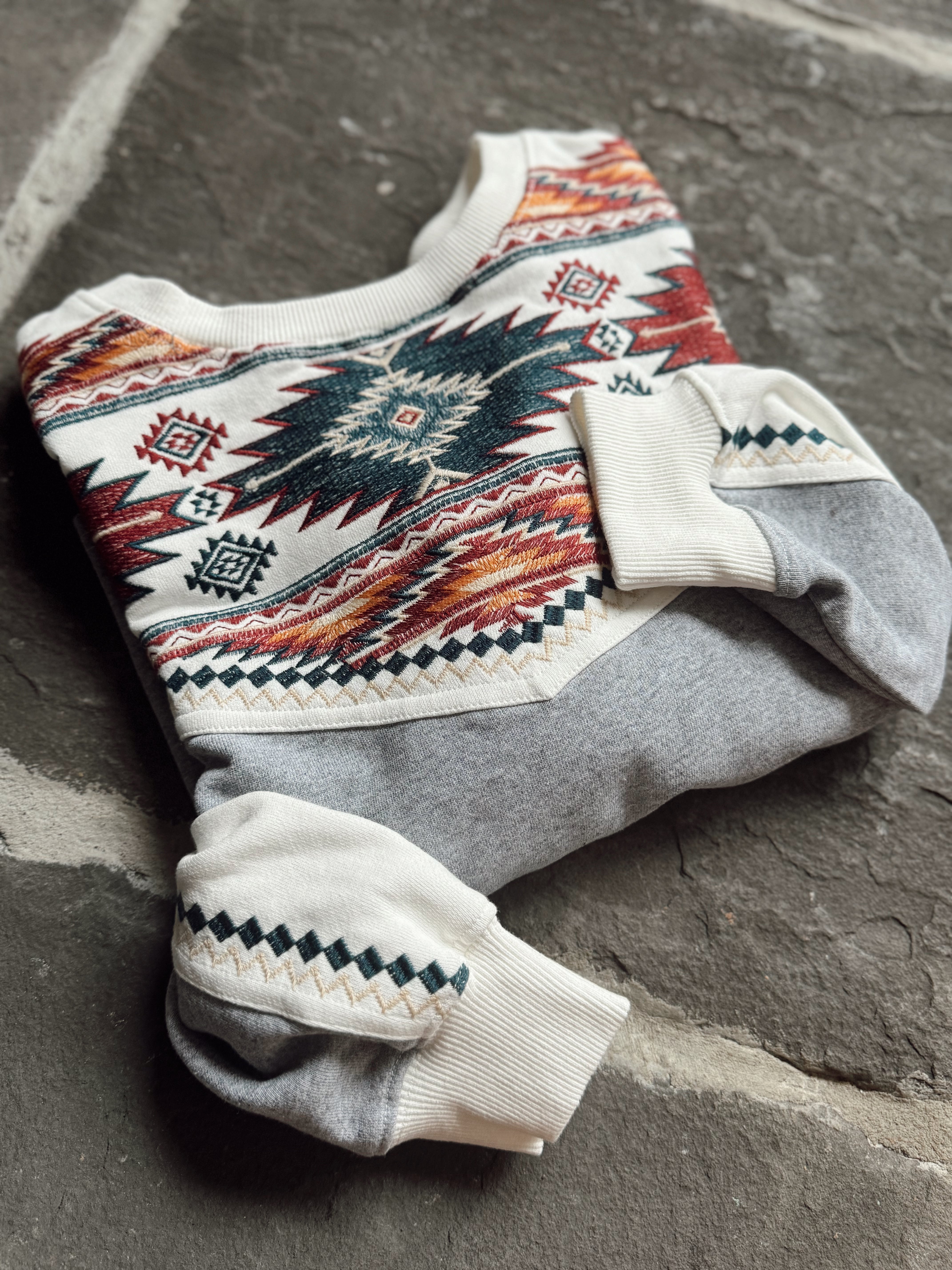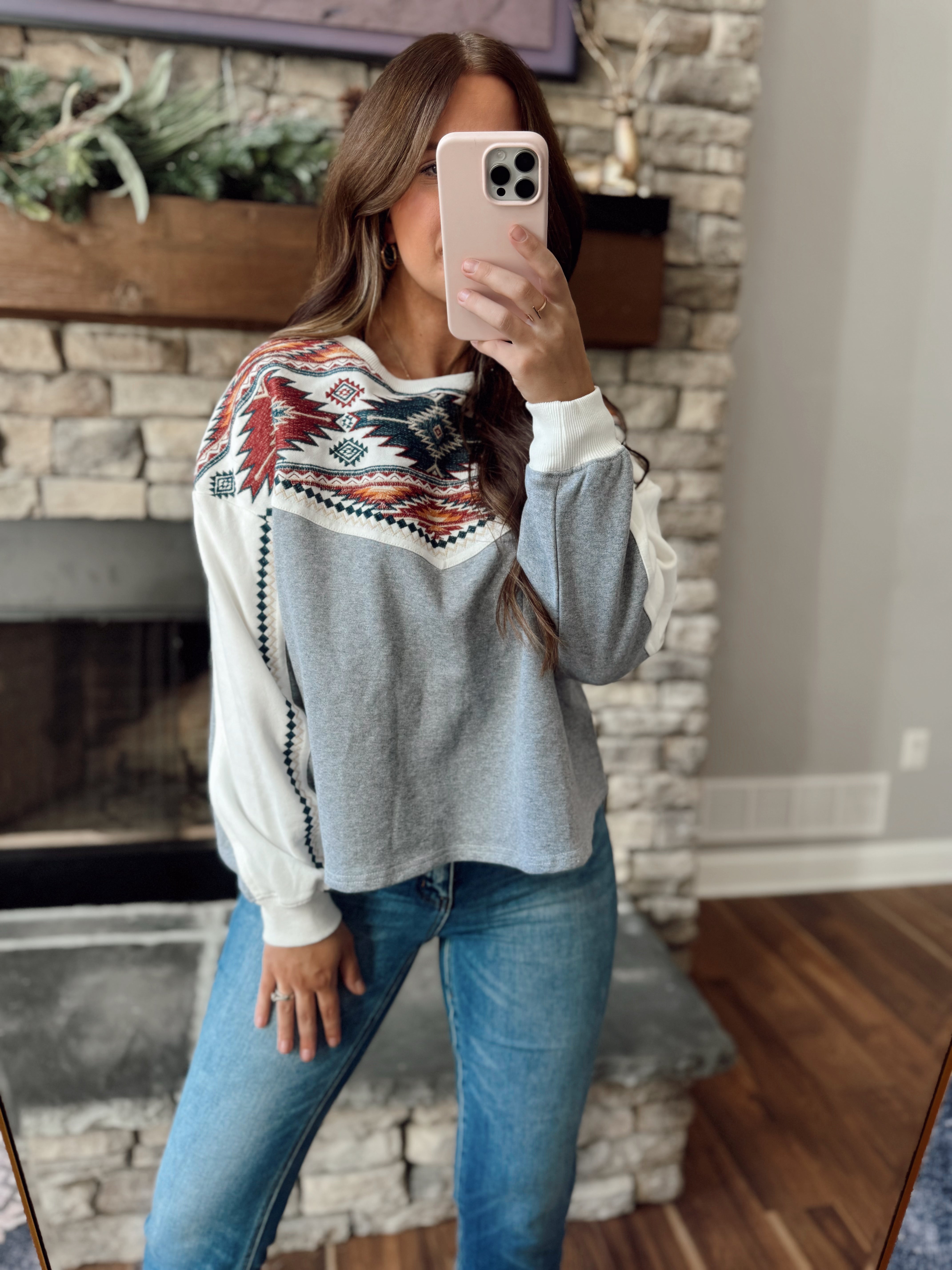 Your Vibe Heather Grey Aztec Embroidered Cropped Crew